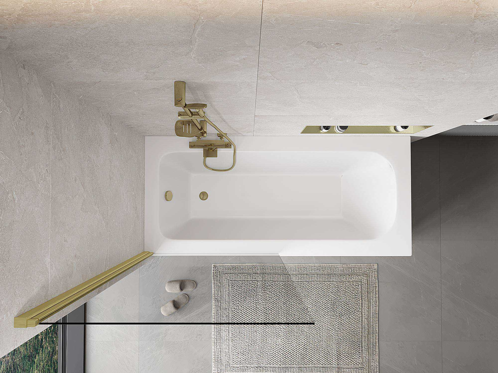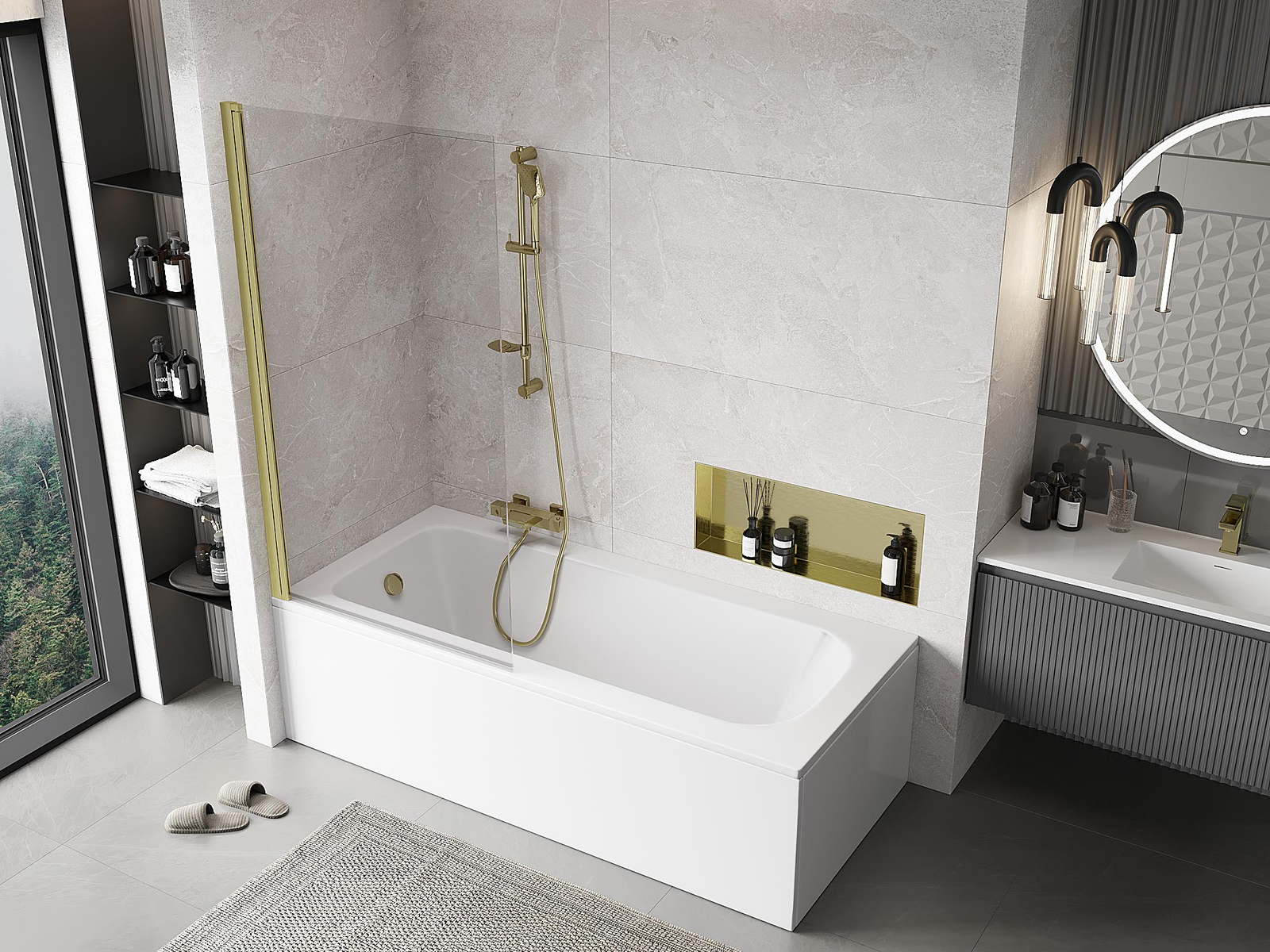 Mexen Mist 1-szárnyú kádparaván 90 x 150 cm, átlátszó, arany kefélt - 8A9-090-001-55-00