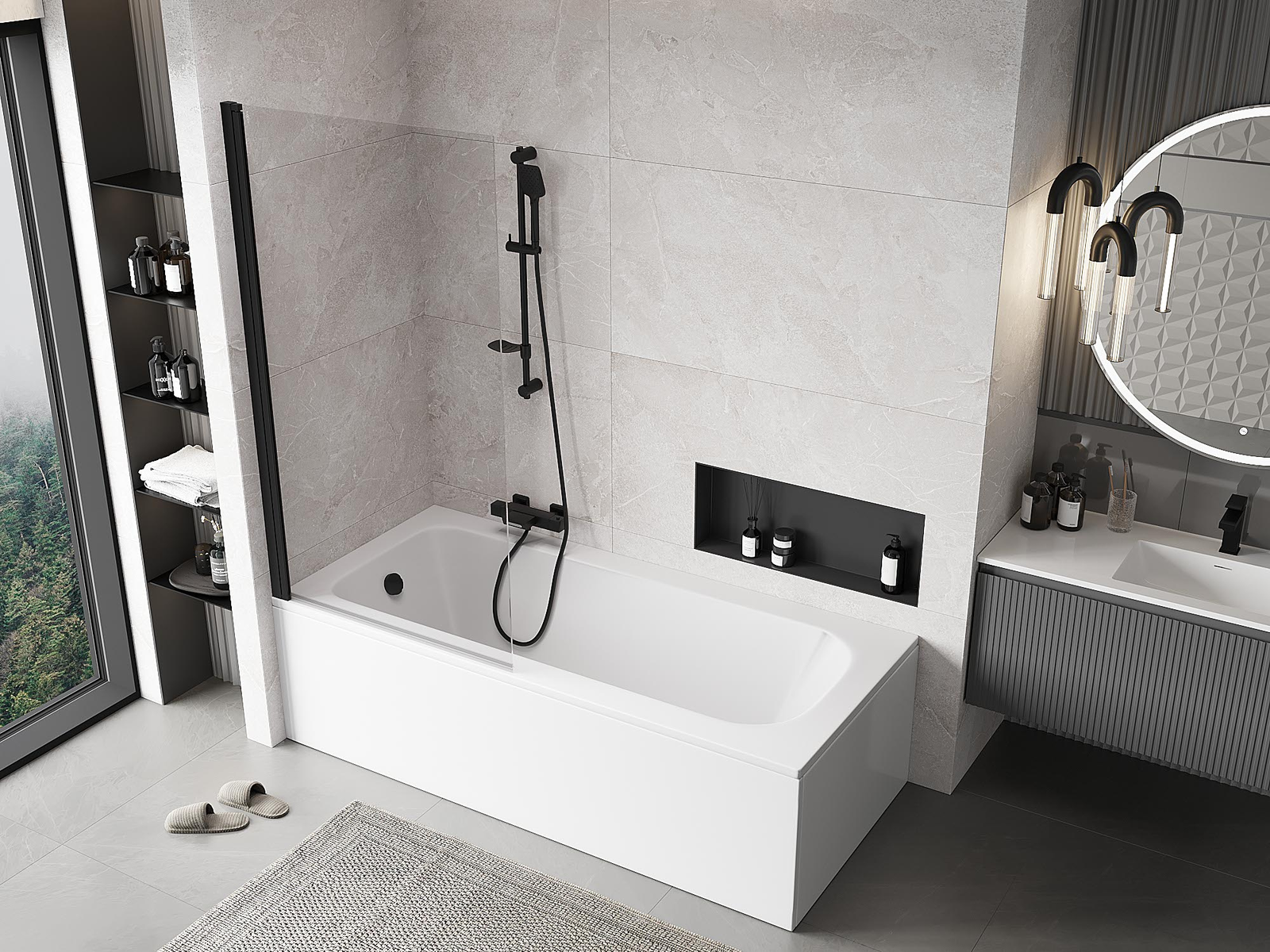 A paraván egy mozgatható szárnnyal rendelkezik, ami összecsukható. Ez a megoldás lehetővé teszi, hogy több helyet spóroljunk meg a fürdőszobában, és szabadon használhassuk a fennmaradó teret, amikor nem használjuk a fürdési zónát.