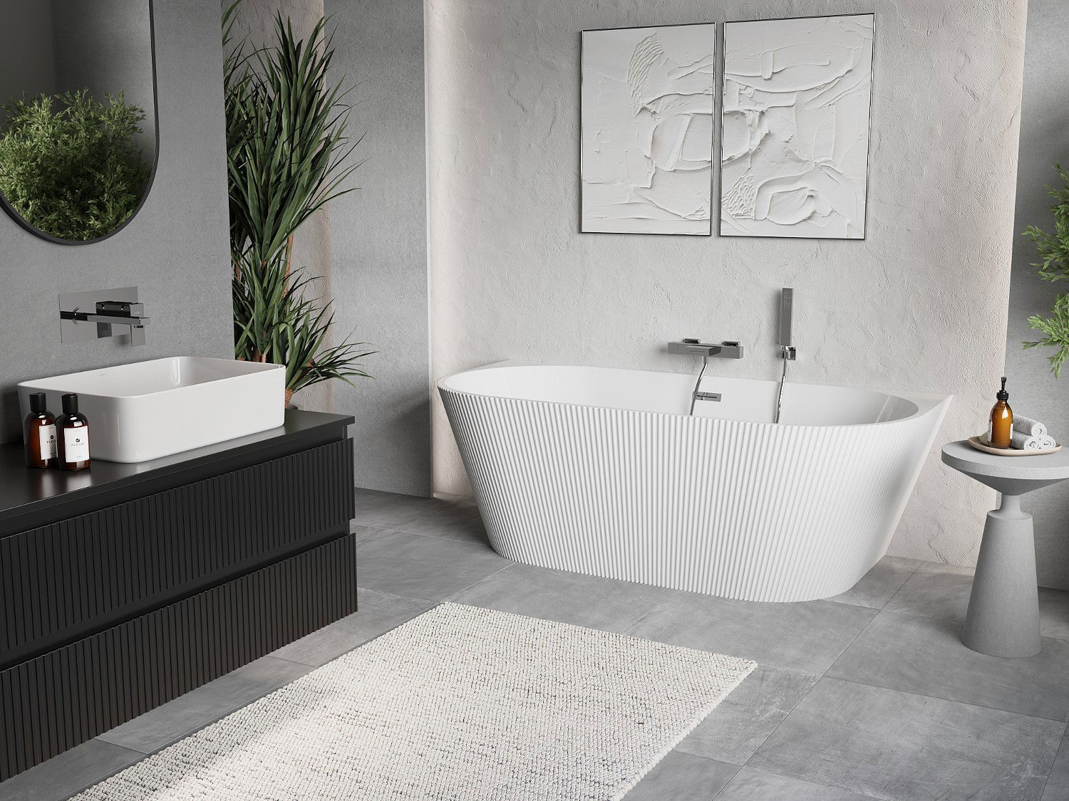 Ez egy modern anyag, amely elegáns megjelenést ötvöz a magas tartóssággal. Ellenáll a mechanikai sérüléseknek, könnyen tisztítható és kellemes tapintású. Az áttetsző forma és a vékony perem könnyedséget és egyedi karaktert kölcsönöz a kádnak, látványos hangsúlyt adva a fürdőszoba kialakításában.