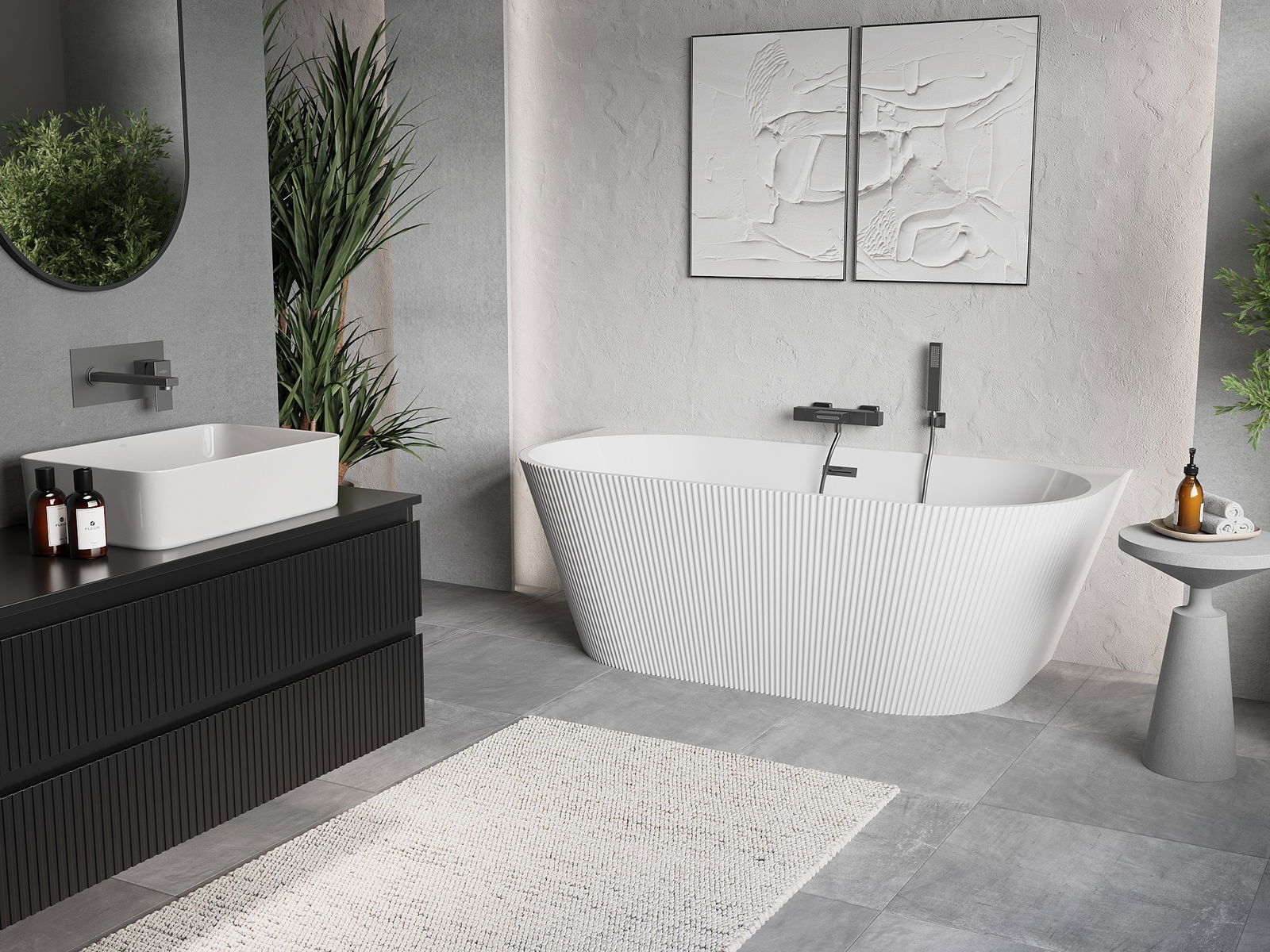 Ez egy modern anyag, amely elegáns megjelenést ötvöz a magas tartóssággal. Ellenáll a mechanikai sérüléseknek, könnyen tisztítható és kellemes tapintású. Az áttetsző forma és a vékony perem könnyedséget és egyedi karaktert kölcsönöz a kádnak, látványos hangsúlyt adva a fürdőszoba kialakításában.