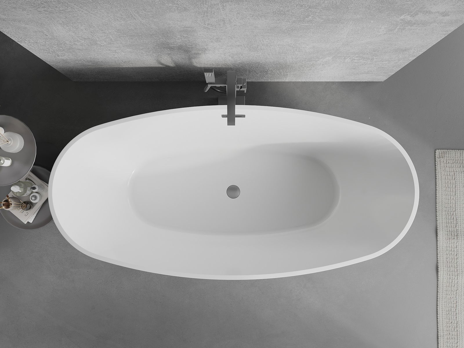 Ez egy modern anyag, amely elegáns megjelenést ötvöz a magas tartóssággal. Ellenáll a mechanikai sérüléseknek, könnyen tisztítható és kellemes tapintású. Az áttetsző forma és a vékony perem könnyedséget és egyedi karaktert kölcsönöz a kádnak, látványos hangsúlyt adva a fürdőszoba kialakításában.
