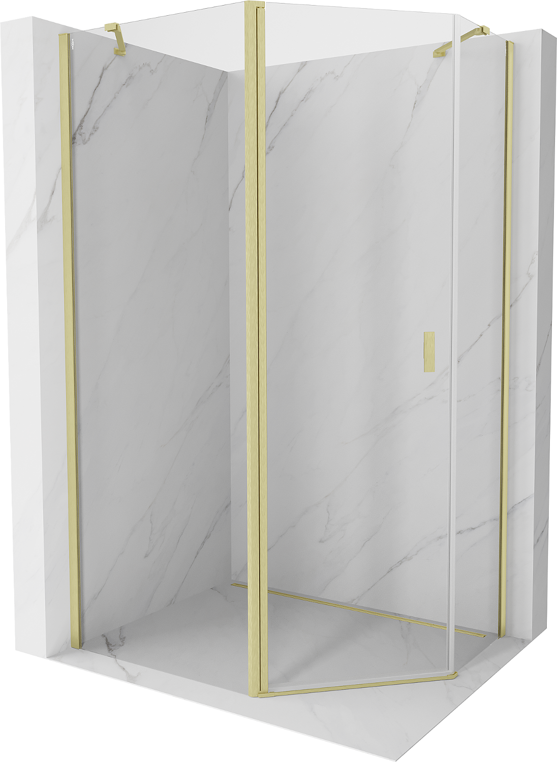 Mexen Mist ötszögletű aszimmetrikus nyíló zuhanykabin 100 x 80 cm, átlátszó, arany szálcsiszolt - 8A8-100-080-55-00