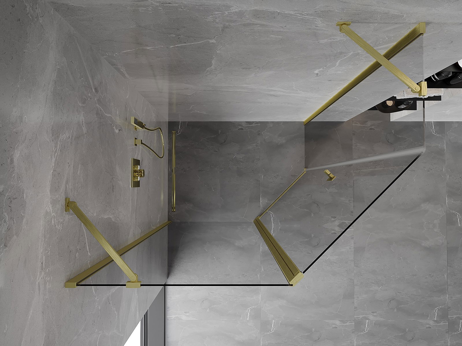 Mexen Mist aszimmetrikus, ötszögletű zuhanykabin, nyíló ajtóval, 100 x 90 cm, átlátszó, arany szálcsiszolt - 8A8-100-090-55-00