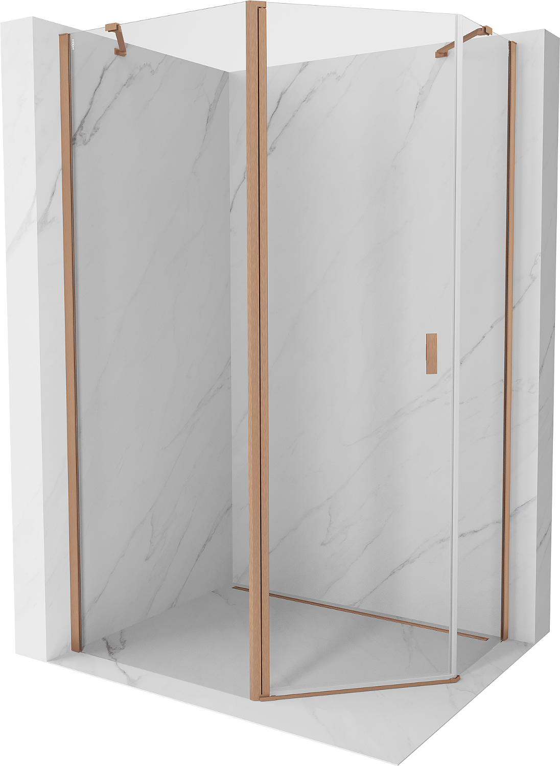 Mexen Mist ötszögletű aszimmetrikus nyíló zuhanykabin 100 x 90 cm, átlátszó, csiszolt réz - 8A8-100-090-65-00
