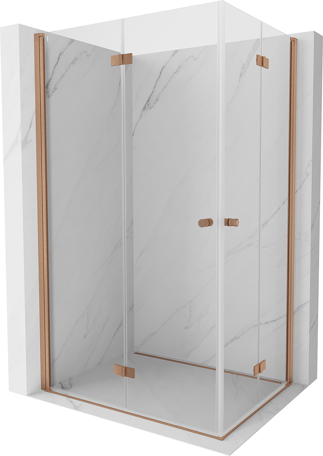 Mexen Mist-F Duo összecsukható zuhanykabin bal 100 x 85 cm, átlátszó, csiszolt réz - 8A6-100L-085P-65-00