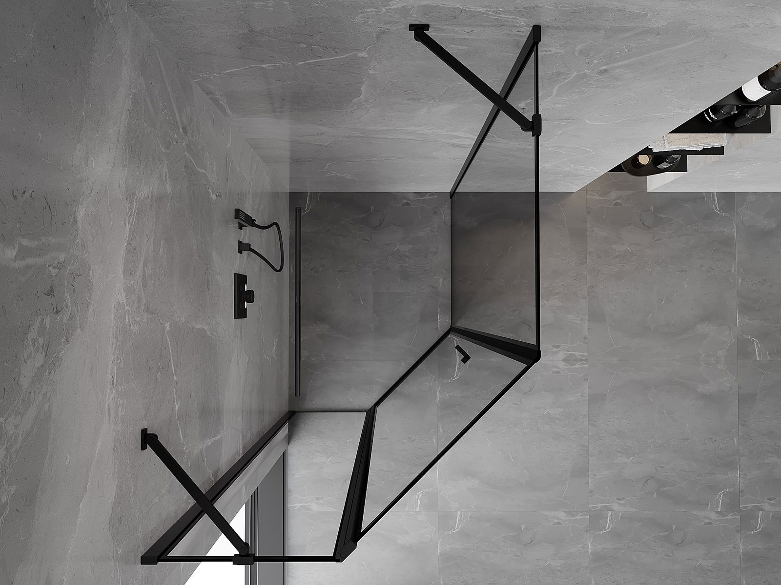 Mexen Mist ötszögletű aszimmetrikus balra nyíló zuhanykabin 80 x 100 cm, fekete keret, fekete - 8A8-080-100-70-70-L