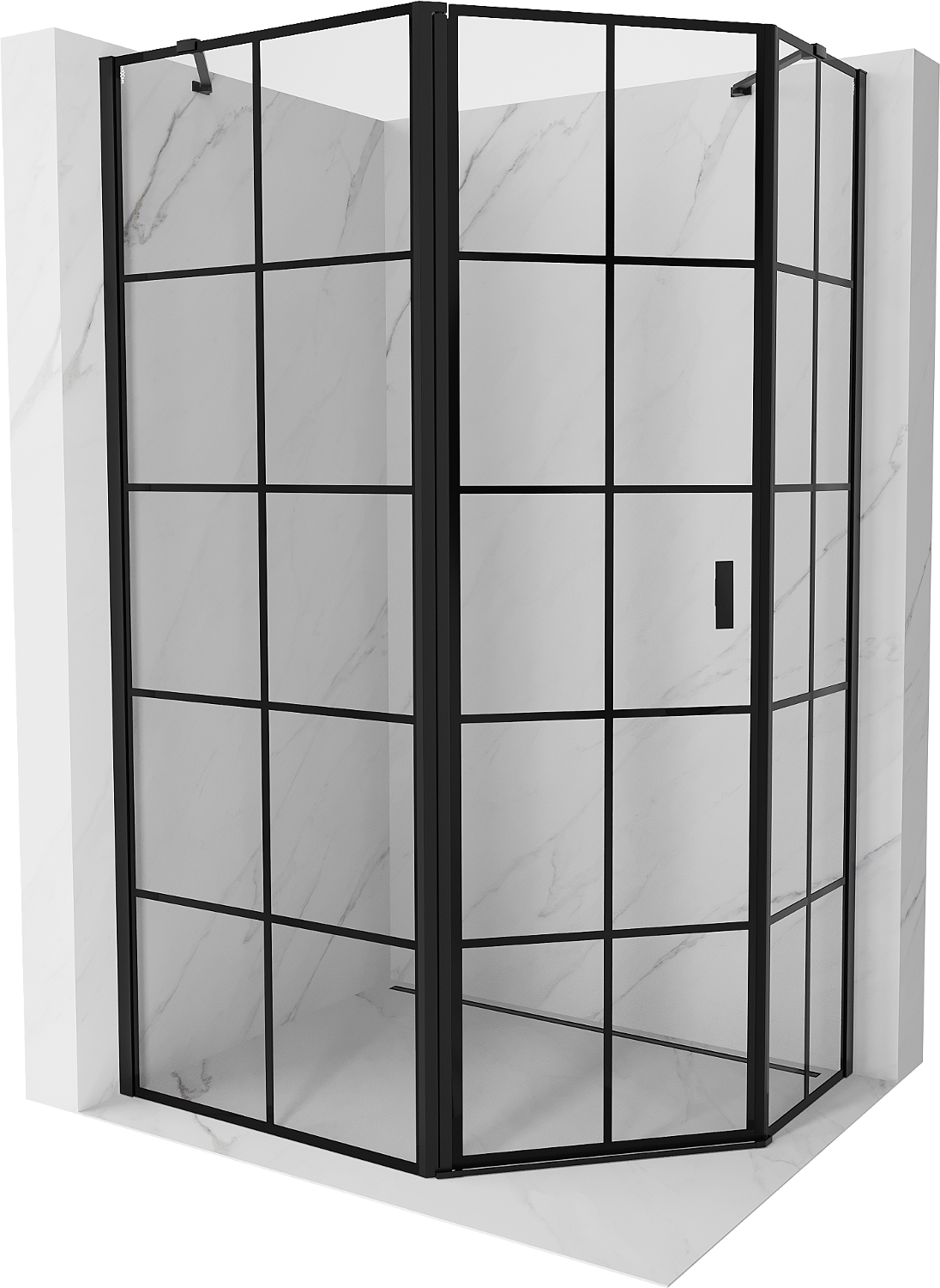 Mexen Mist ötszögletű aszimmetrikus baloldali zuhanykabin 90 x 80 cm, fekete rács, fekete - 8A8-090-080-70-77-L