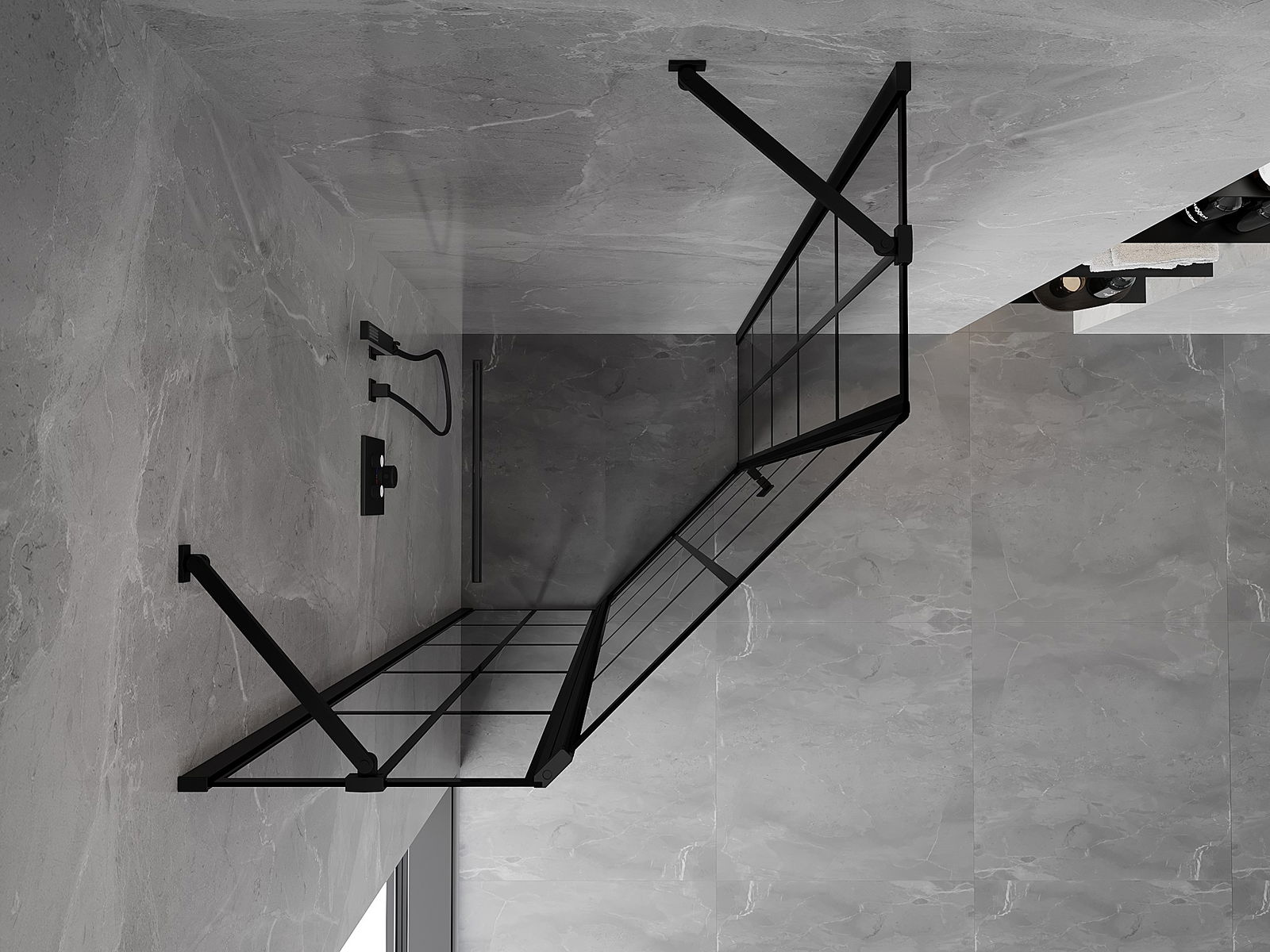 Mexen Mist ötszögletű zuhanykabin, balra nyíló, 90 x 90 cm, fekete rács, fekete - 8A8-090-090-70-77-L