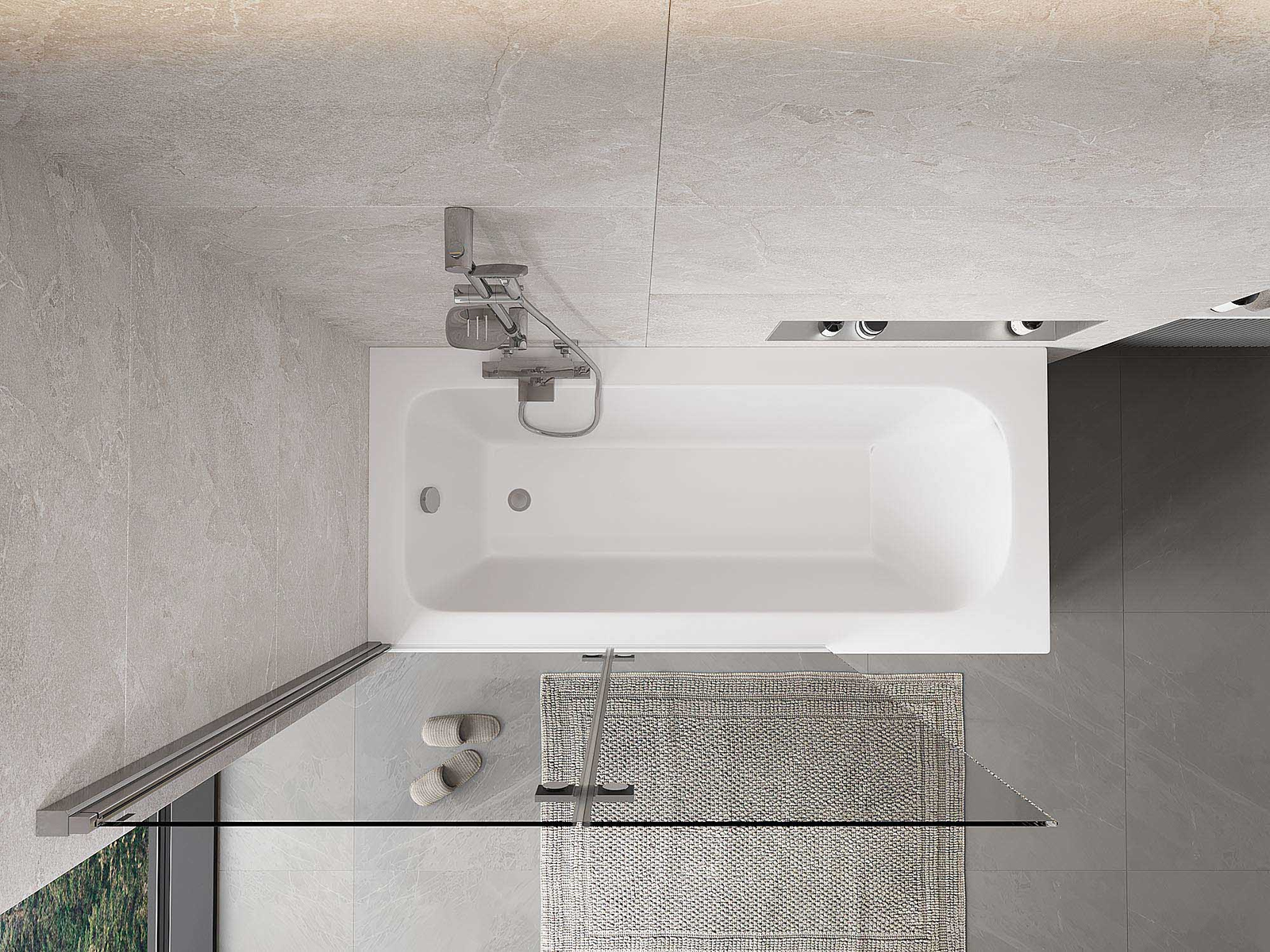 Két szárnyból készült paraván, amely összecsukható. Ez a megoldás több helyet takarít meg a fürdőszobában, és lehetővé teszi a fennmaradó tér szabad használatát, amikor nem használjuk a fürdőrészt.