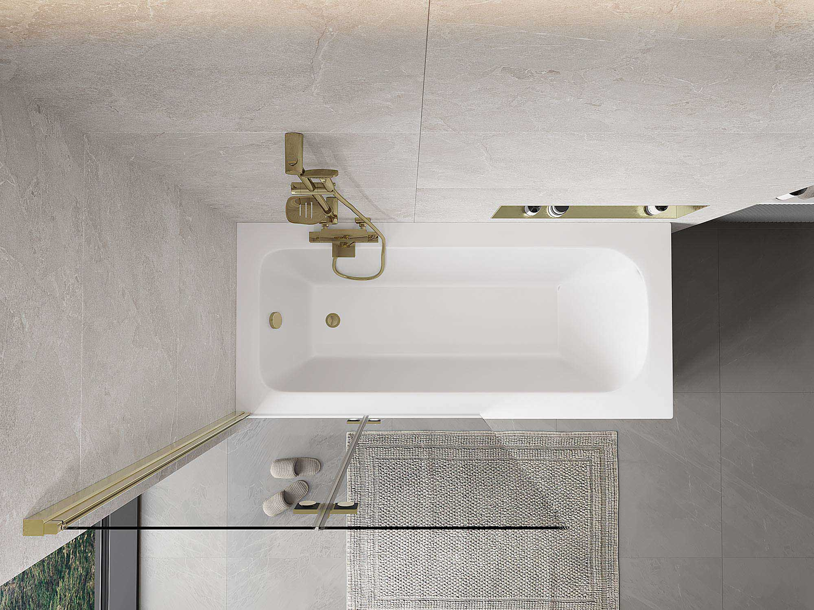 Két szárnyból készült paraván, amely összecsukható. Ez a megoldás több helyet takarít meg a fürdőszobában, és lehetővé teszi a fennmaradó tér szabad használatát, amikor nem használjuk a fürdőrészt.