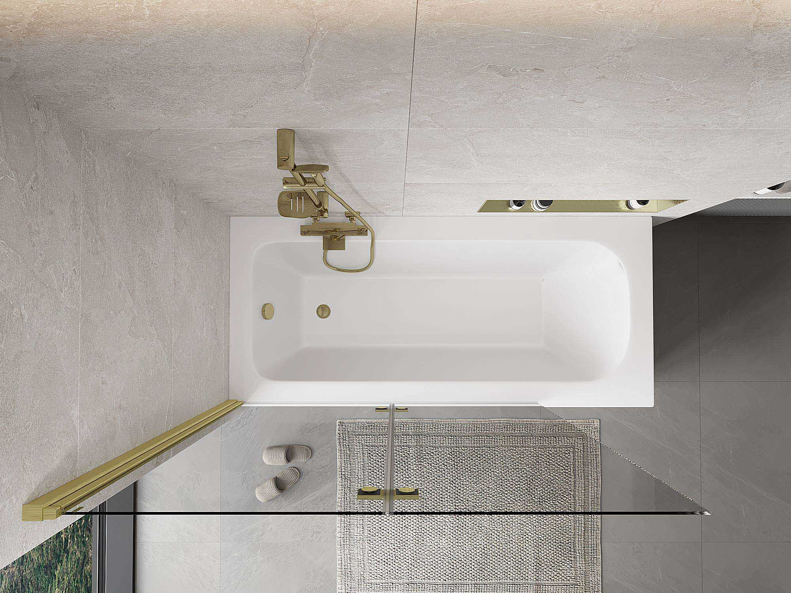 Két szárnyból készült paraván, amely összecsukható. Ez a megoldás több helyet takarít meg a fürdőszobában, és lehetővé teszi a fennmaradó tér szabad használatát, amikor nem használjuk a fürdőrészt.