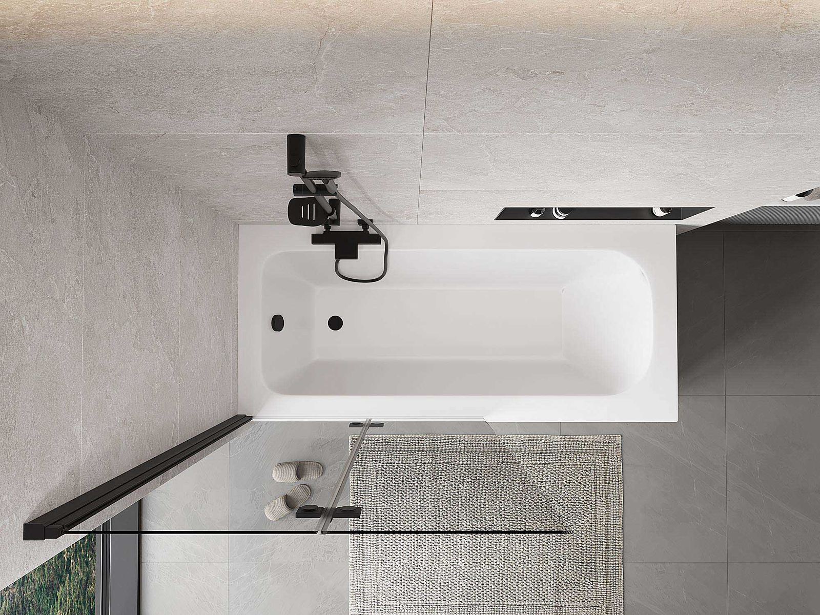Két szárnyból készült paraván, amely összecsukható. Ez a megoldás több helyet takarít meg a fürdőszobában, és lehetővé teszi a fennmaradó tér szabad használatát, amikor nem használjuk a fürdőrészt.