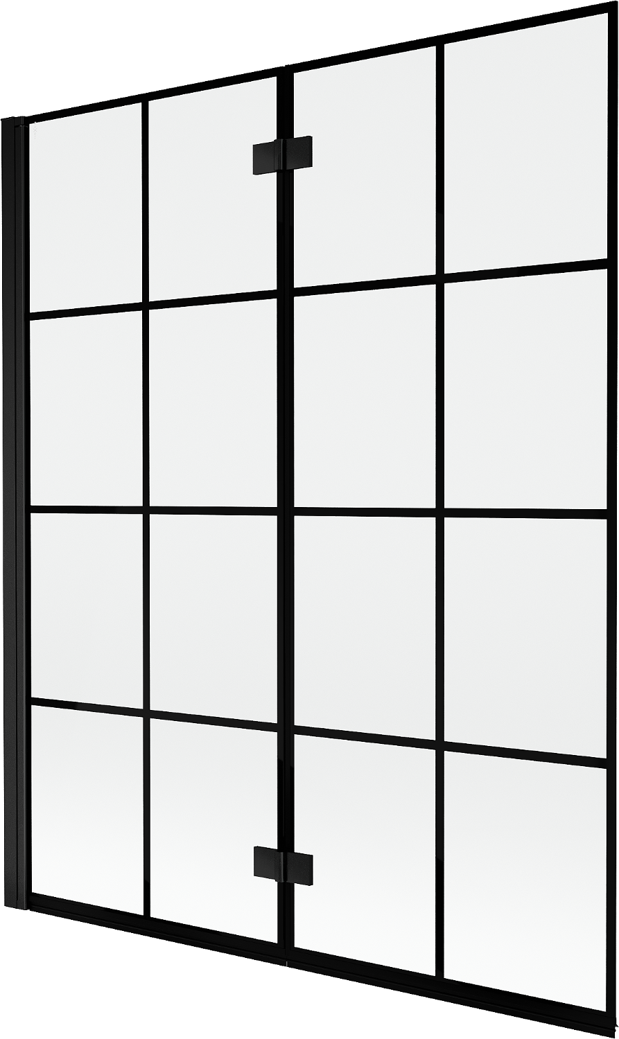 Két szárnyból készült paraván, amely összecsukható. Ez a megoldás több helyet takarít meg a fürdőszobában, és lehetővé teszi a fennmaradó tér szabad használatát, amikor nem használjuk a fürdőrészt.