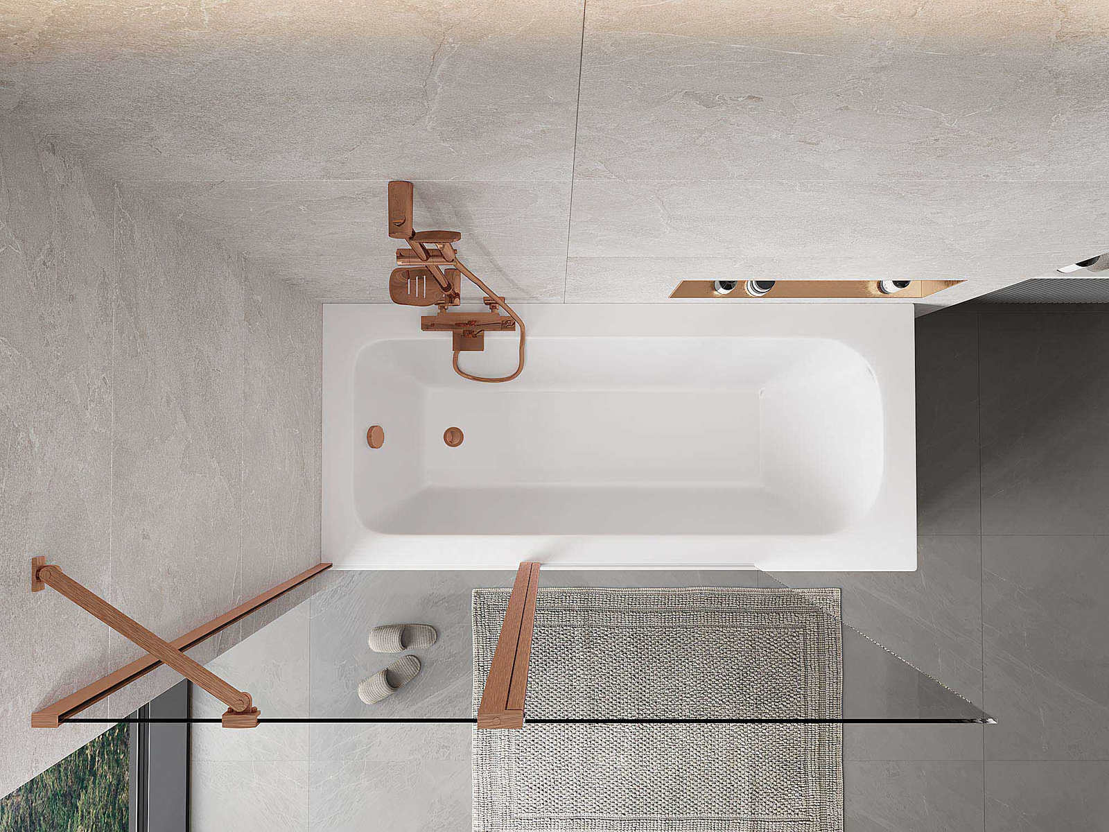 Két szárnyból készült paraván, amely összecsukható. Ez a megoldás több helyet takarít meg a fürdőszobában, és lehetővé teszi a fennmaradó tér szabad használatát, amikor nem használjuk a fürdőrészt.