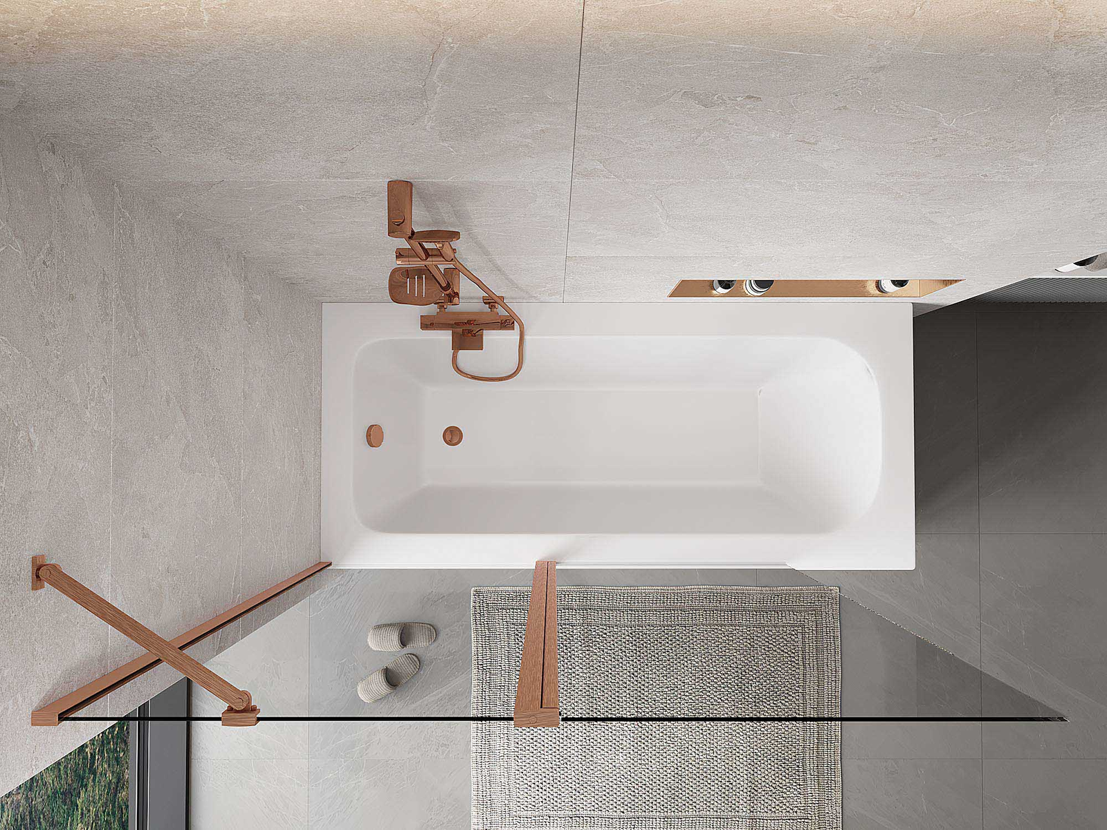 Mexen Mist kétszárnyú kádparaván 140 x 150 cm, átlátszó, kefe réz - 8A9-140-011-65-00