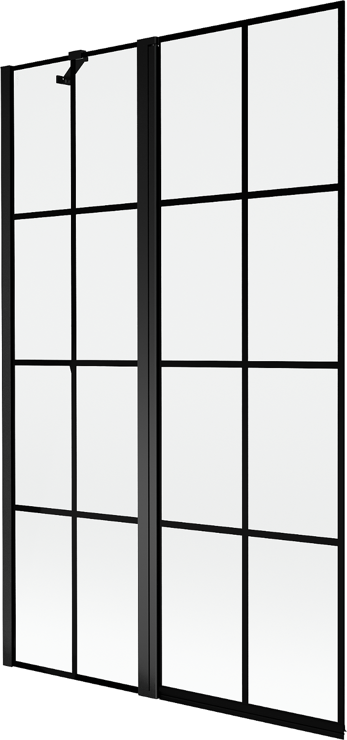 Két szárnyból készült paraván, amely összecsukható. Ez a megoldás több helyet takarít meg a fürdőszobában, és lehetővé teszi a fennmaradó tér szabad használatát, amikor nem használjuk a fürdőrészt.