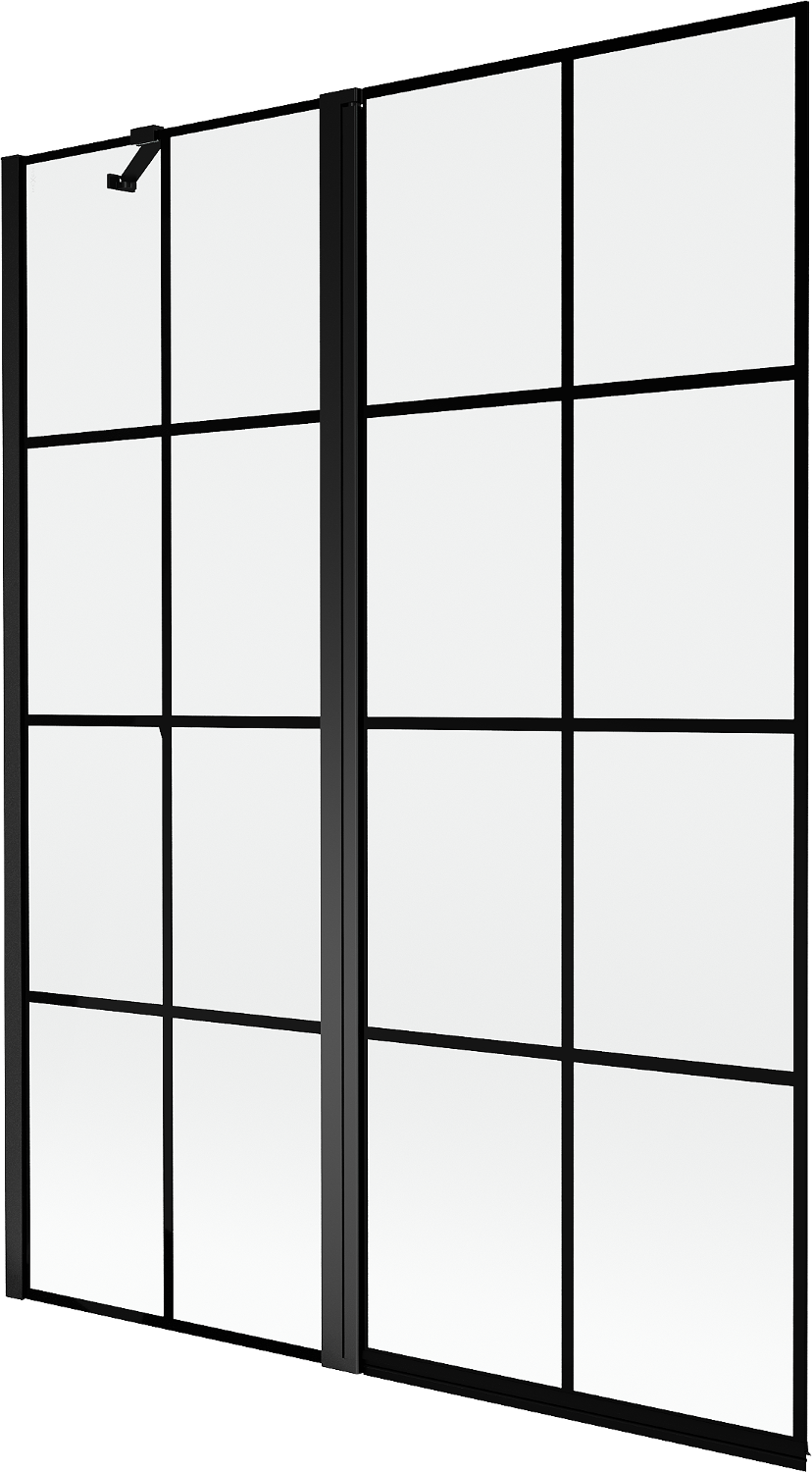 Két szárnyból készült paraván, amely összecsukható. Ez a megoldás több helyet takarít meg a fürdőszobában, és lehetővé teszi a fennmaradó tér szabad használatát, amikor nem használjuk a fürdőrészt.