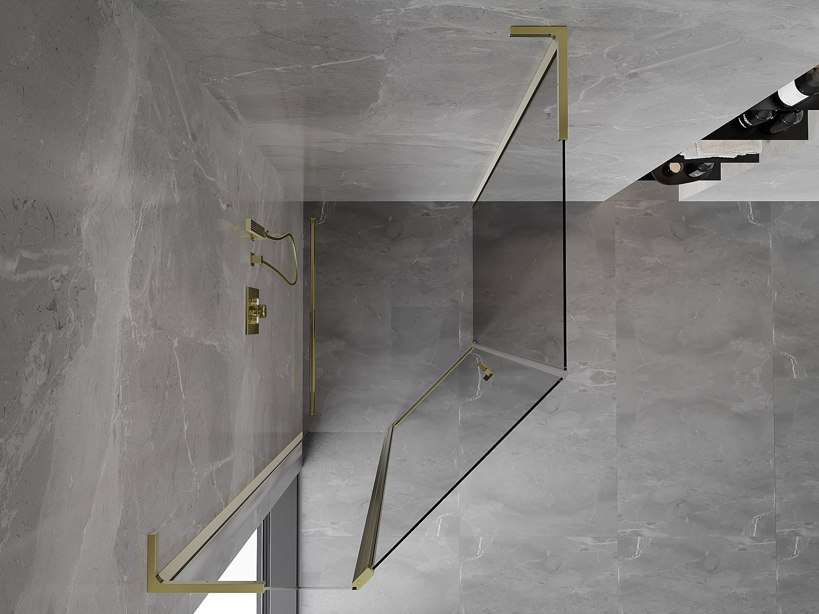 Mexen Mist L ötszögletű aszimmetrikus zuhanykabin, nyíló ajtóval, 80 x 90 cm, átlátszó, arany - 8A8L-080-090-50-00