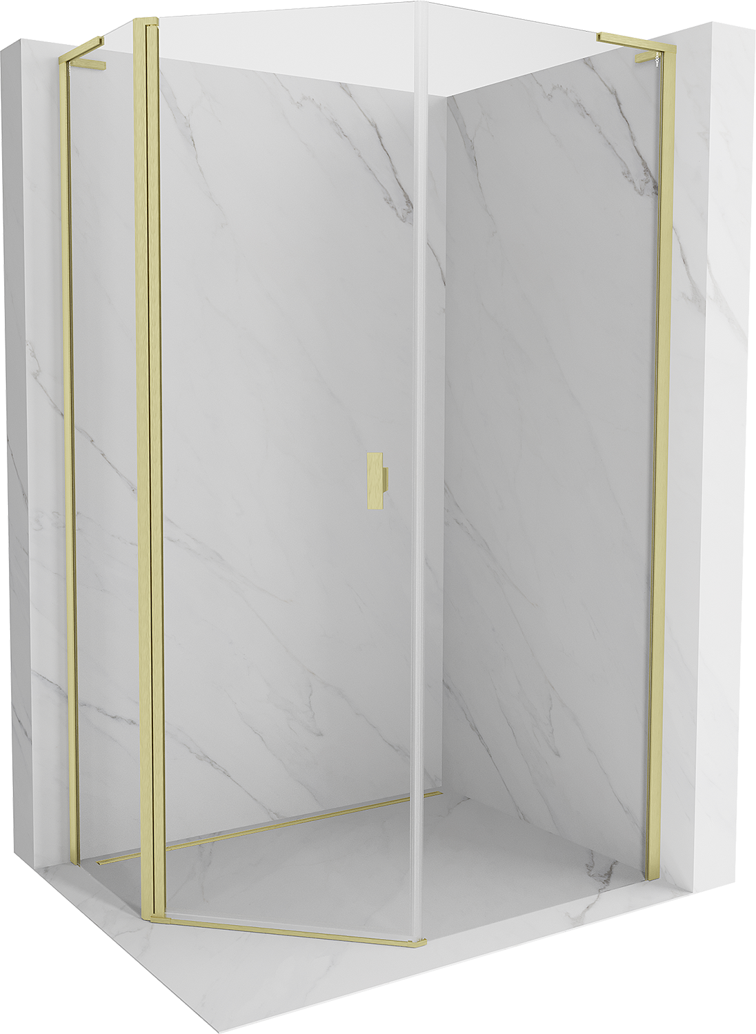 Mexen Mist L ötszögletű aszimmetrikus zuhanykabin, nyíló, 80x90 cm, átlátszó, arany szálcsiszolt - 8A8L-080-090-55-00