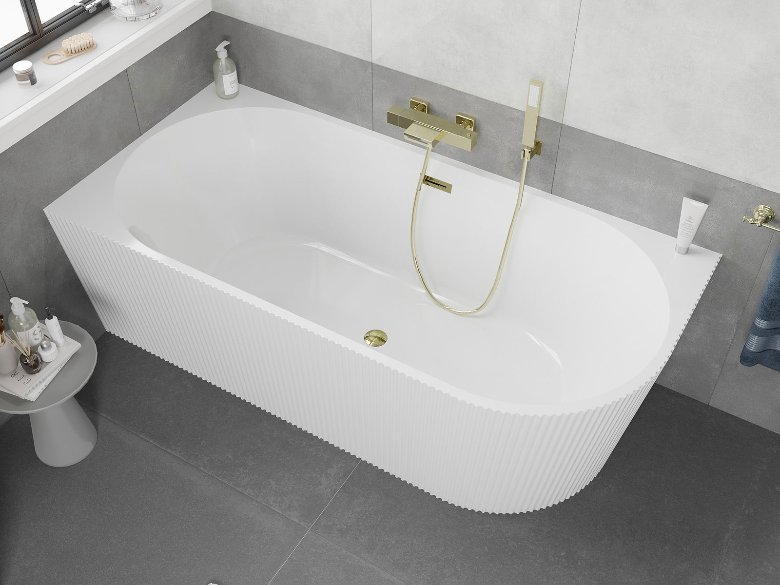 Mexen Silo szabadon álló sarokkád bal bordázott 170 x 80 cm, fehér, arany túlfolyó - 52891708000L-50