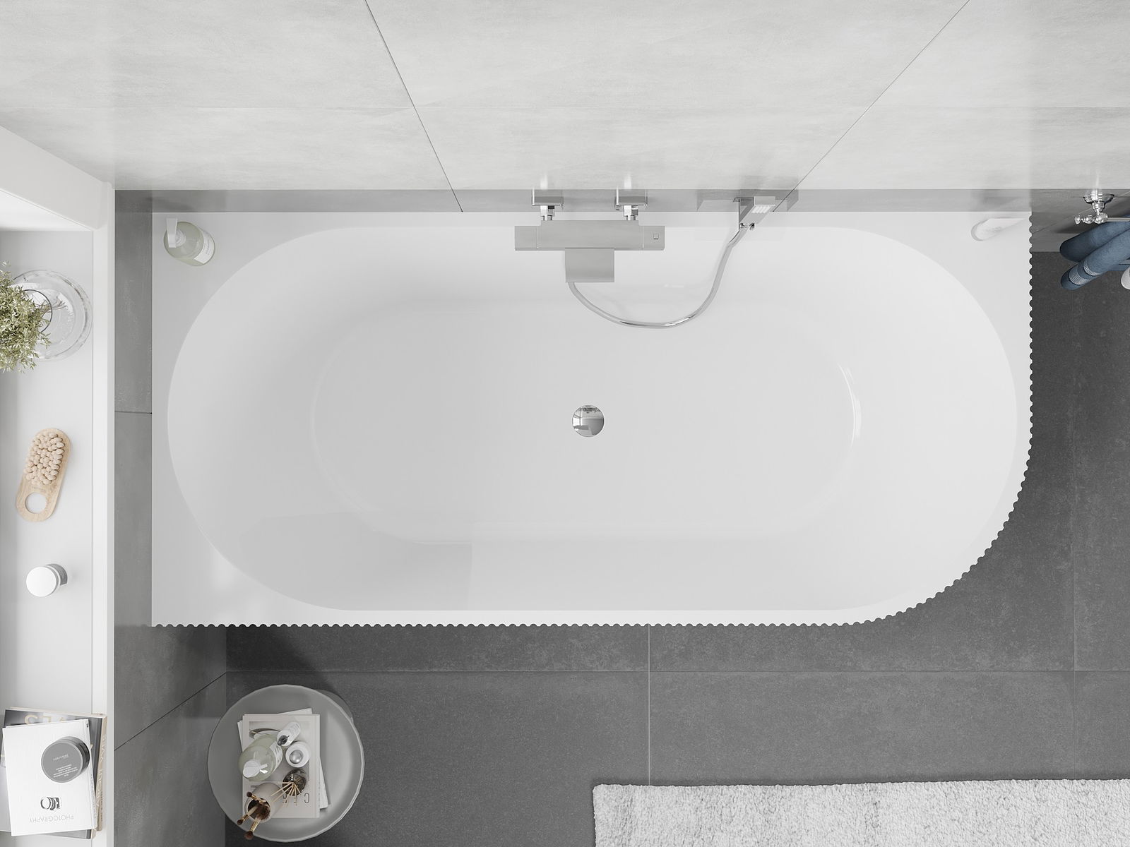 Ez egy modern anyag, amely elegáns megjelenést ötvöz a magas tartóssággal. Ellenáll a mechanikai sérüléseknek, könnyen tisztítható és kellemes tapintású. Az áttetsző forma és a vékony perem könnyedséget és egyedi karaktert kölcsönöz a kádnak, látványos hangsúlyt adva a fürdőszoba kialakításában.