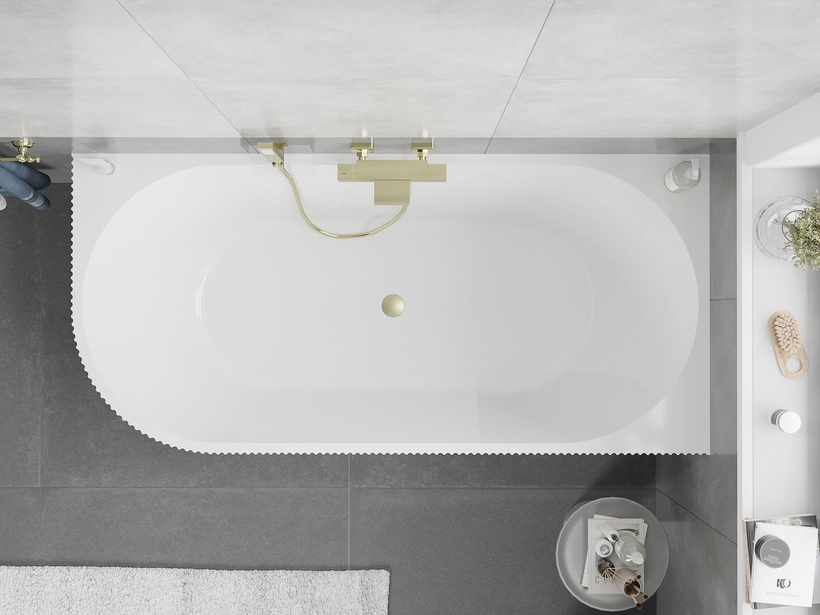 Mexen Silo szabadon álló sarokkád jobb bordázott 150 x 75 cm, fehér, túlfolyó arany sörtéjű - 52891507500P-55