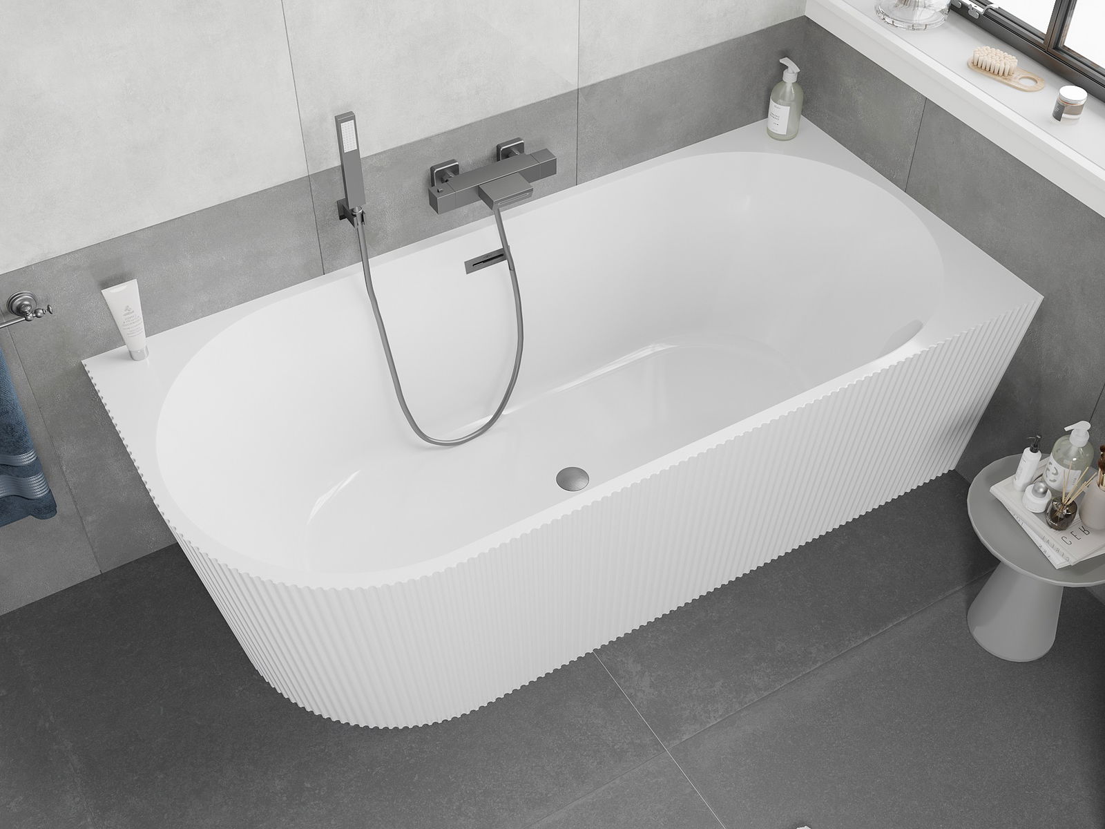 Mexen Silo szabadon álló sarokkád jobb bordázott 150 x 75 cm, fehér, gun gray szálcsiszolt túlfolyóval - 52891507500P-66