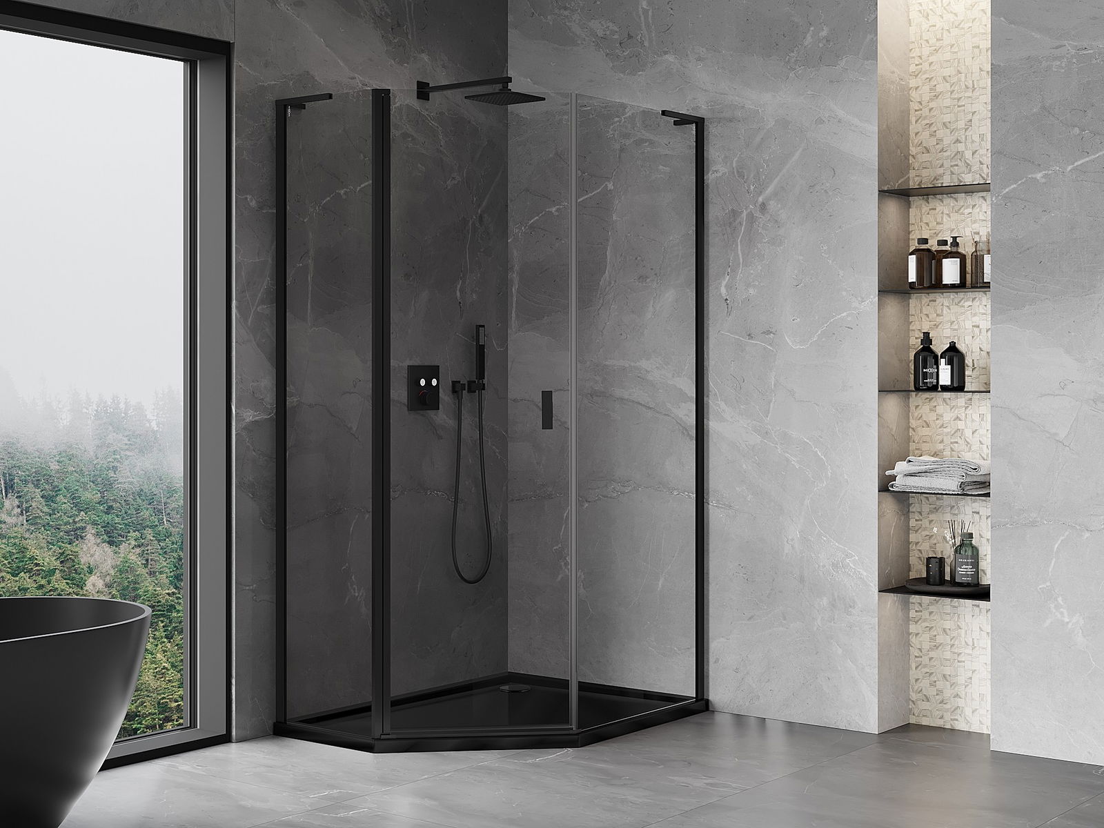 Mexen Mist L ötszögletű aszimmetrikus zuhanykabin nyíló ajtóval 90 x 100 cm, átlátszó, fekete - 8A8L-090-100-70-00