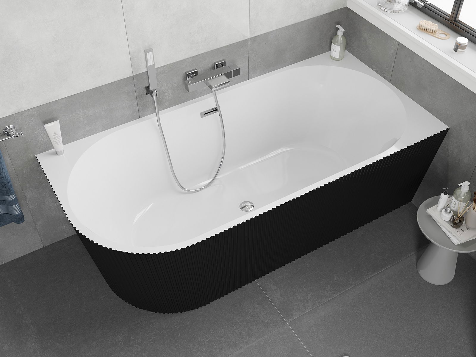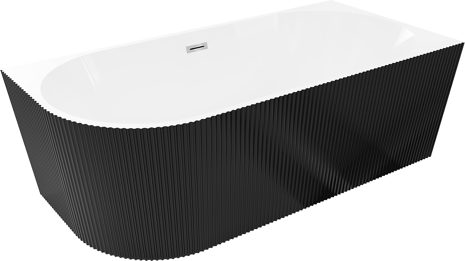 Mexen Silo szabadon álló sarokkád jobbos bordázott 150 x 75 cm, fehér/fekete, króm túlfolyó - 52891507575P-01
