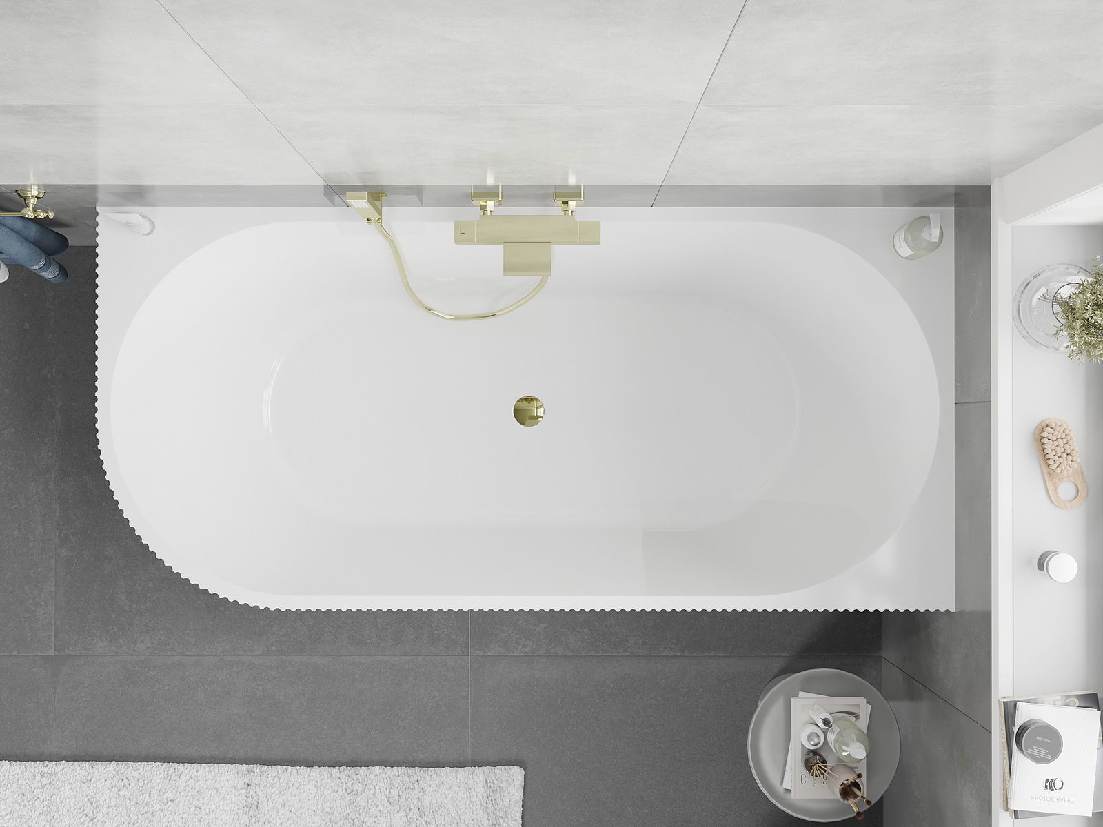 Mexen Silo szabadon álló sarokkád jobb bordázott 150 x 75 cm, fehér/fekete, arany túlfolyó - 52891507575P-50