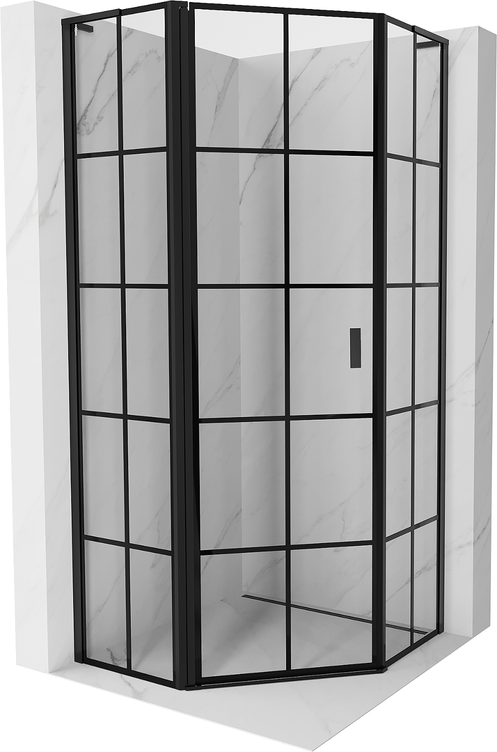 Mexen Mist L pentagonális zuhanykabin balra nyíló 80 x 80 cm, fekete rács, fekete - 8A8L-080-080-70-77-L