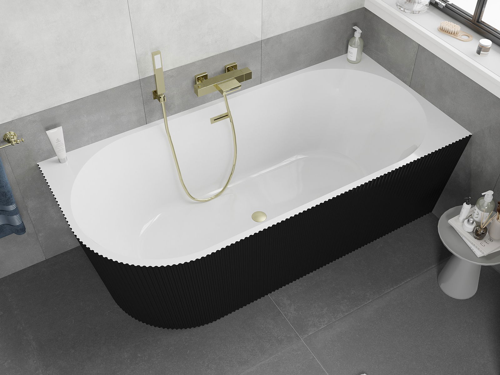 Mexen Silo szabadon álló sarokkád jobb bordázott 150 x 75 cm, fehér/fekete, túlfolyó arany kefélt - 52891507575P-55