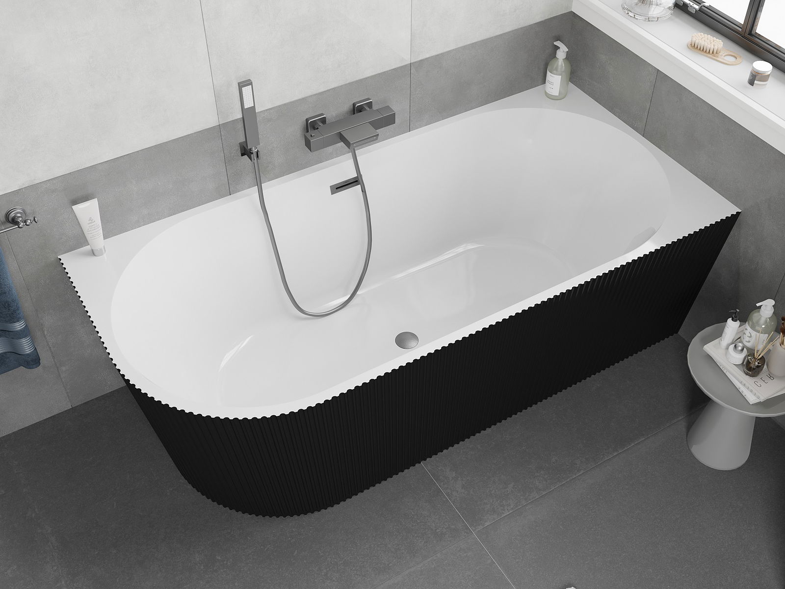 Mexen Silo szabadon álló, sarokba illeszkedő jobb oldali bordázott kád 150 x 75 cm, fehér/fekete, gun gray kefélt