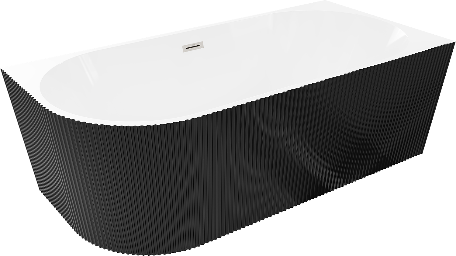 Mexen Silo szabadon álló sarokkád jobb bordázott 150 x 75 cm, fehér/fekete, szálcsiszolt nikkel túlfolyó