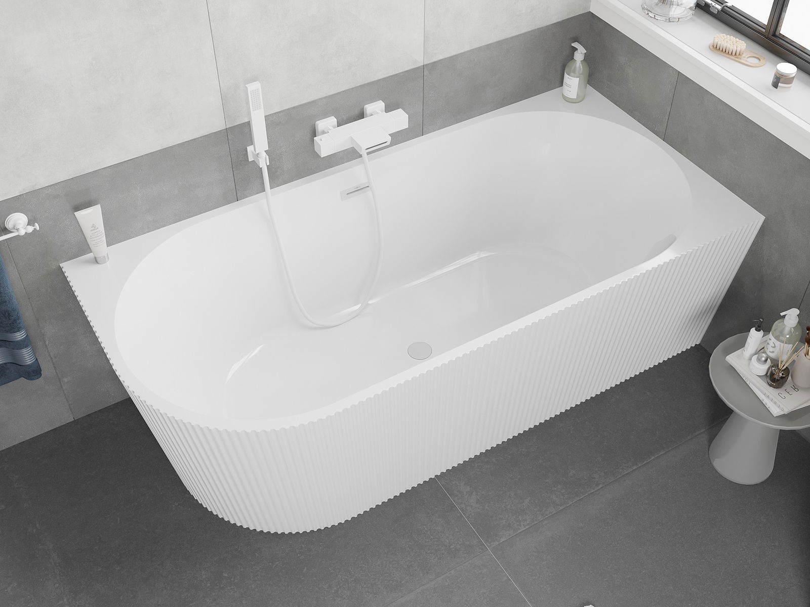 Mexen Silo szabadon álló sarok fürdőkád, jobb bordázott 170 x 80 cm, fehér, fehér túlfolyóval - 52891708000P-20