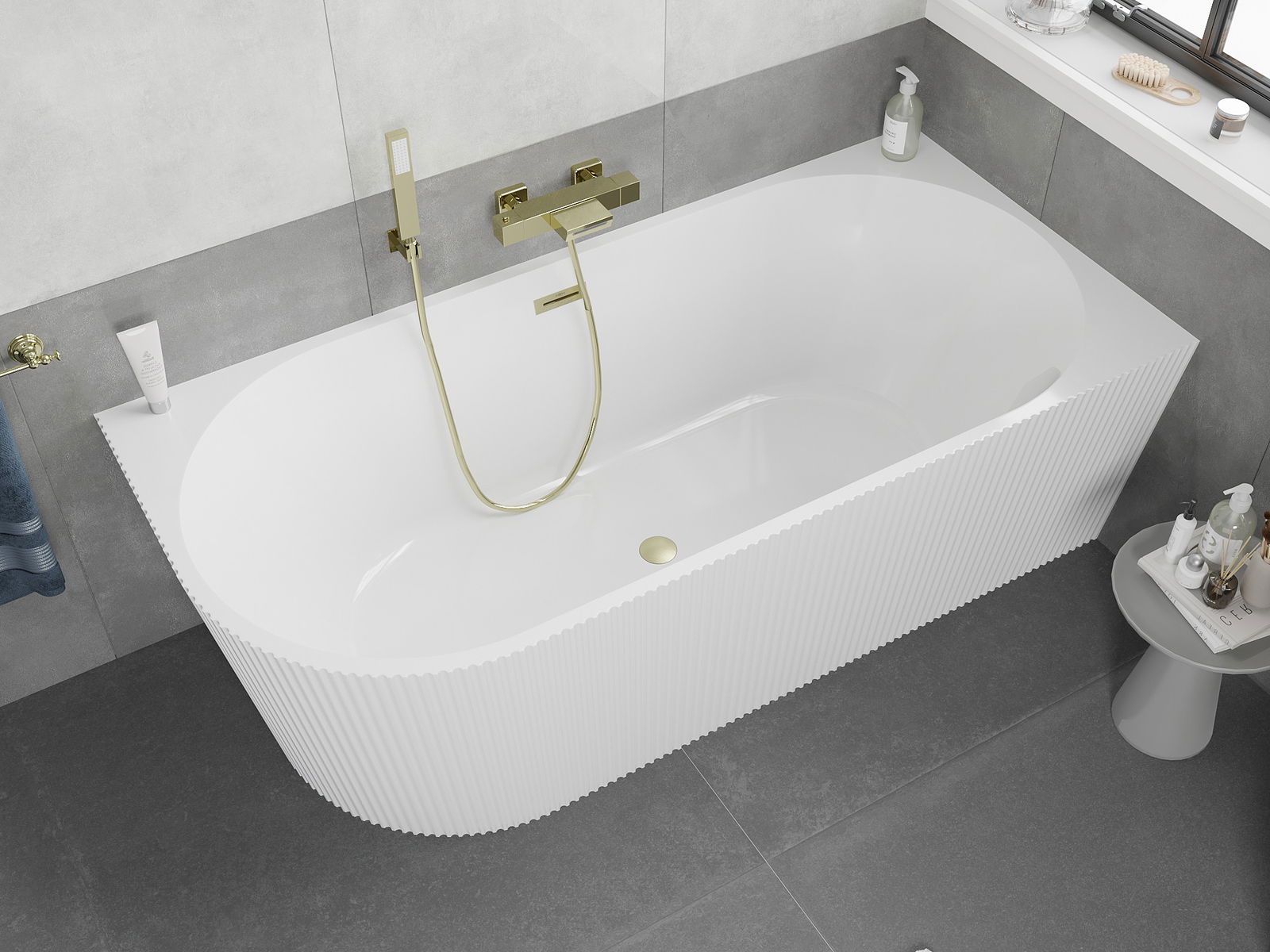 Mexen Silo szabadon álló sarokkád jobbra bordázott 170 x 80 cm, fehér, arany matt túlfolyó - 52891708000P-55