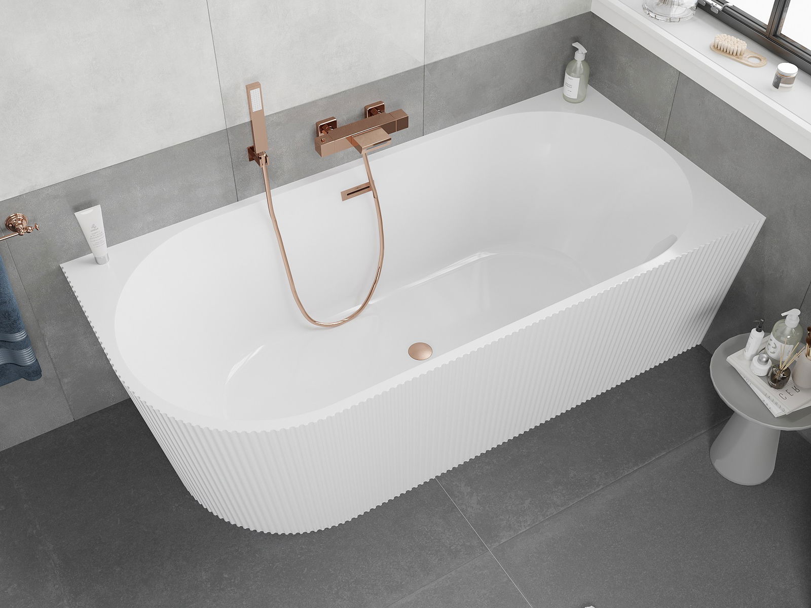 Mexen Silo 170 x 80 cm-es sarok szabadon álló jobb oldalú barázdált kád, fehér, matt réz - 52891708000P-65