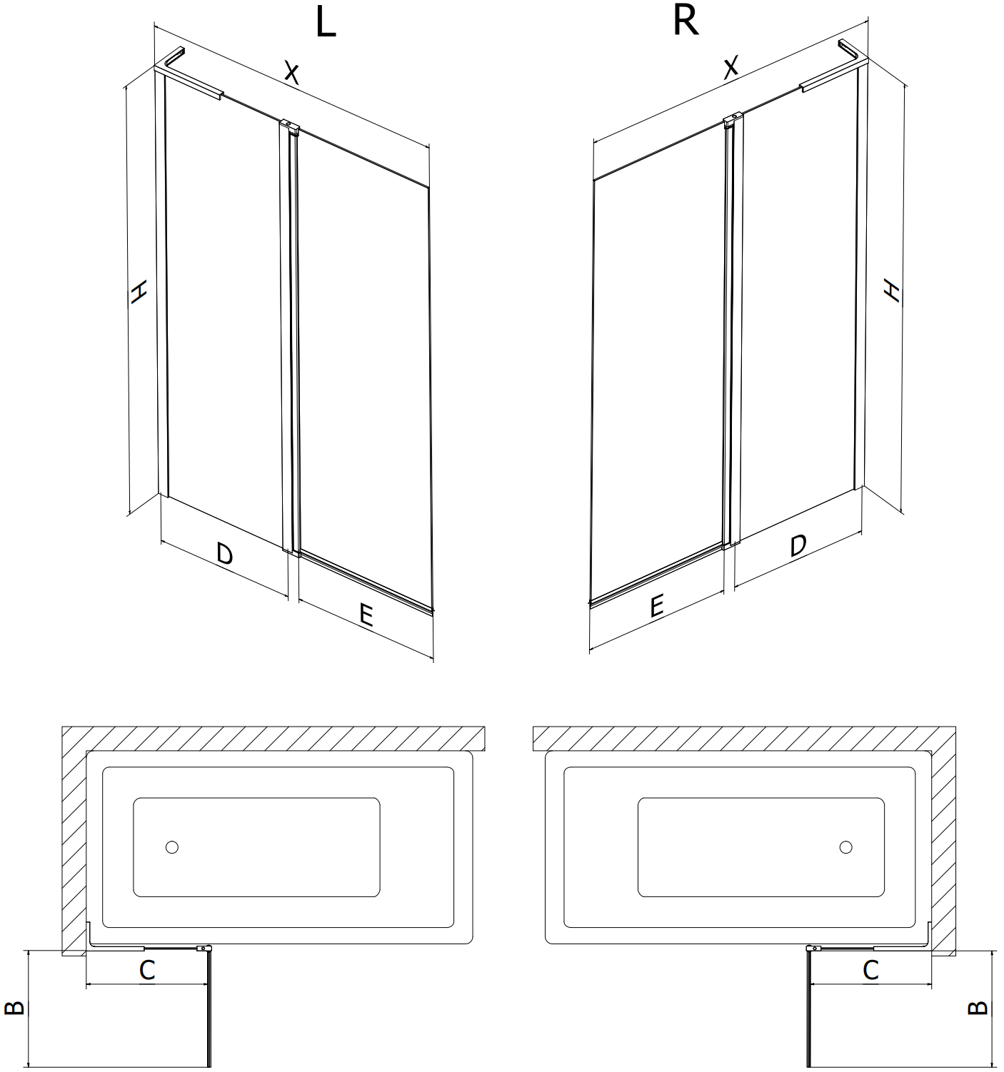 Két szárnyból készült paraván, amely összecsukható. Ez a megoldás több helyet takarít meg a fürdőszobában, és lehetővé teszi a fennmaradó tér szabad használatát, amikor nem használjuk a fürdőrészt.