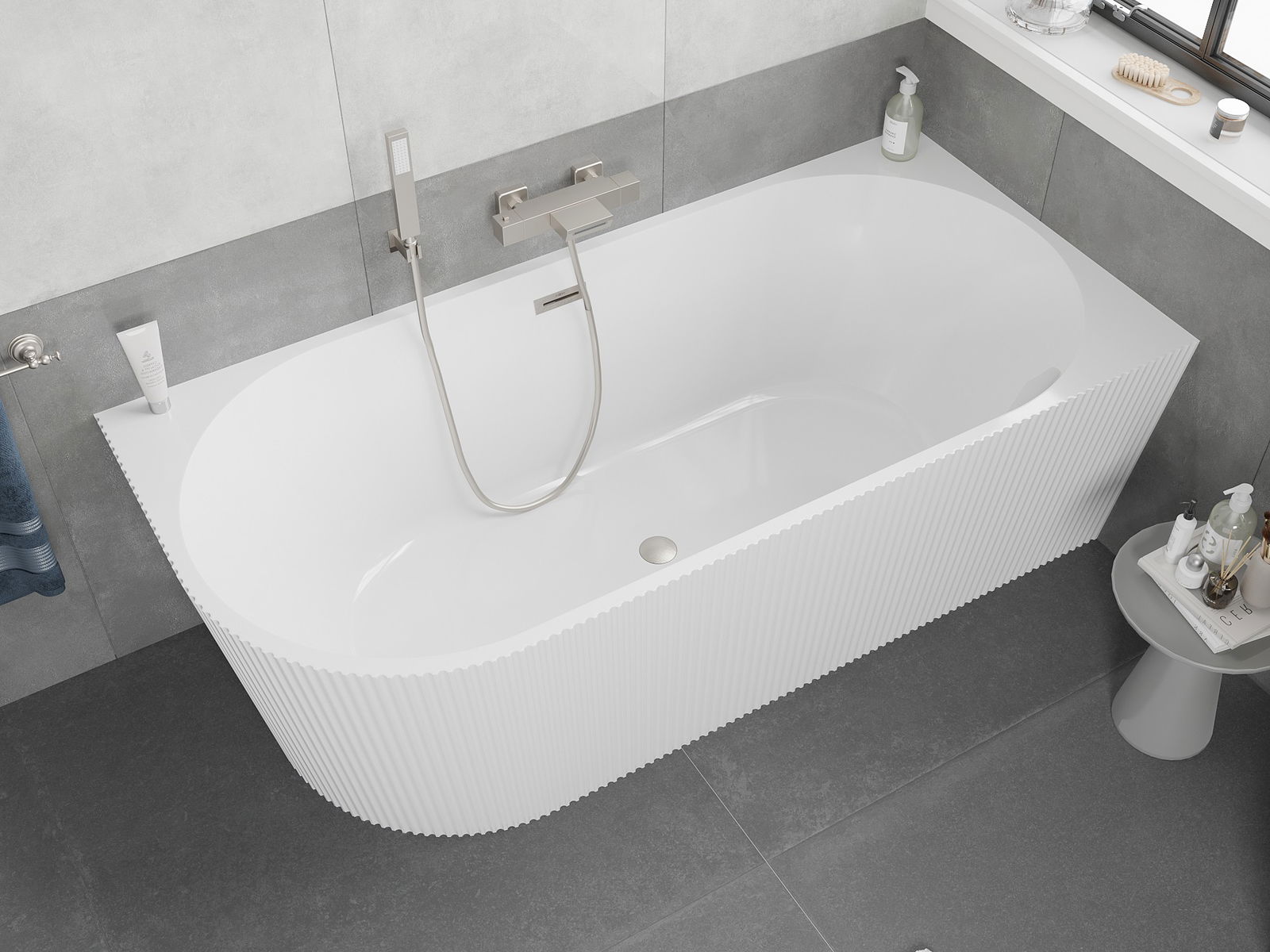 Mexen Silo jobb sarokba helyezhető, bordázott szabadon álló kád 170 x 80 cm, fehér, szálcsiszolt nikkel túlfolyóval