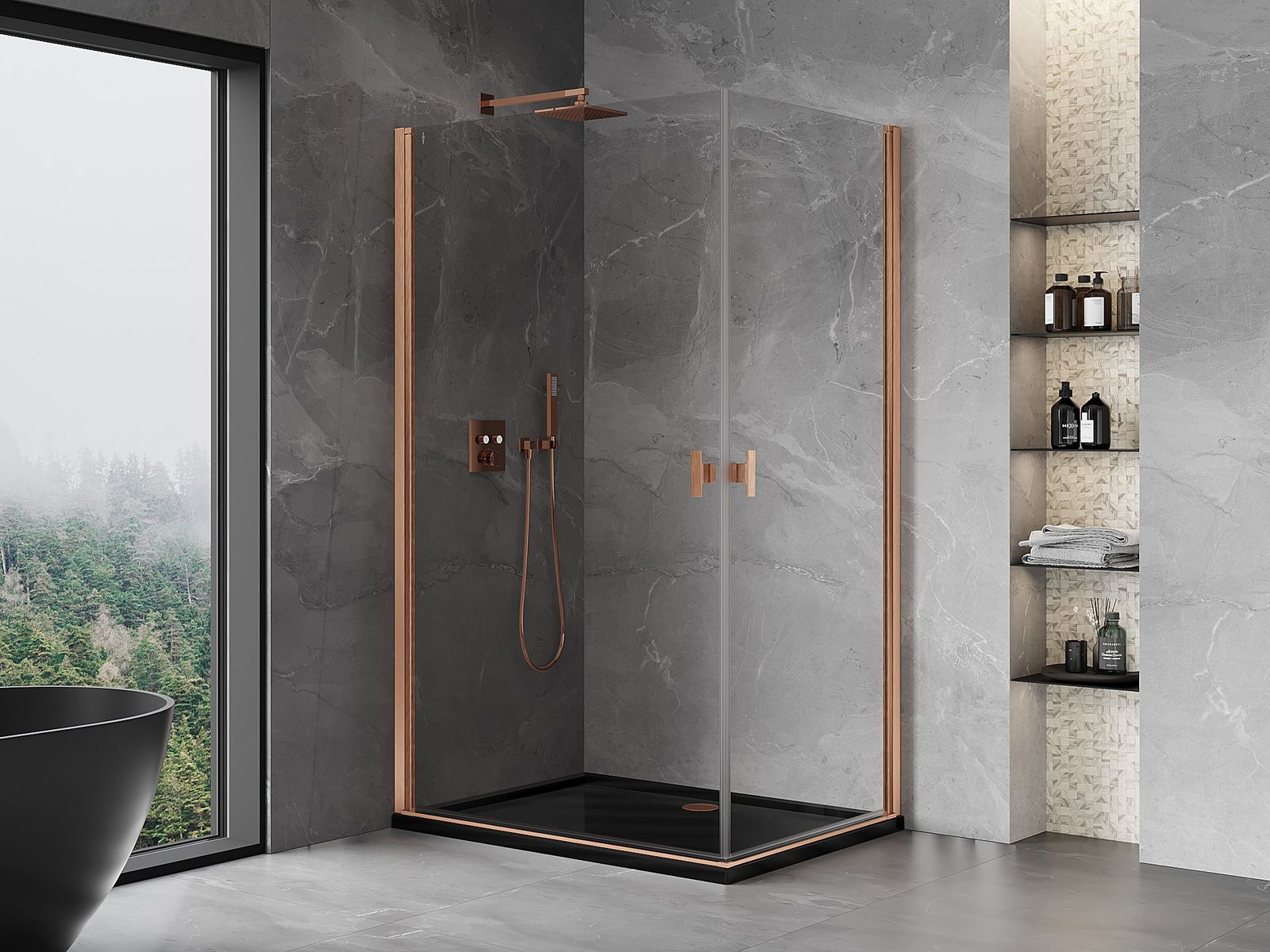 A praktikus és kényelmes fogantyú tartós és ellenálló fémből készült. A divatos forma a profilok színéhez igazított kivitelezéssel együtt modern és stílusos megjelenést kölcsönöz az egésznek, kiemelve minden fürdőszoba esztétikáját.