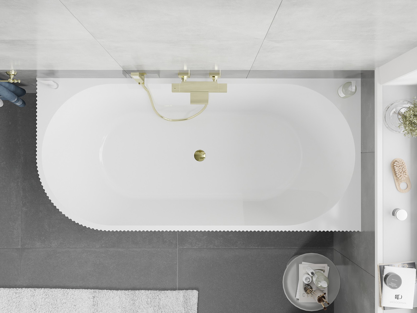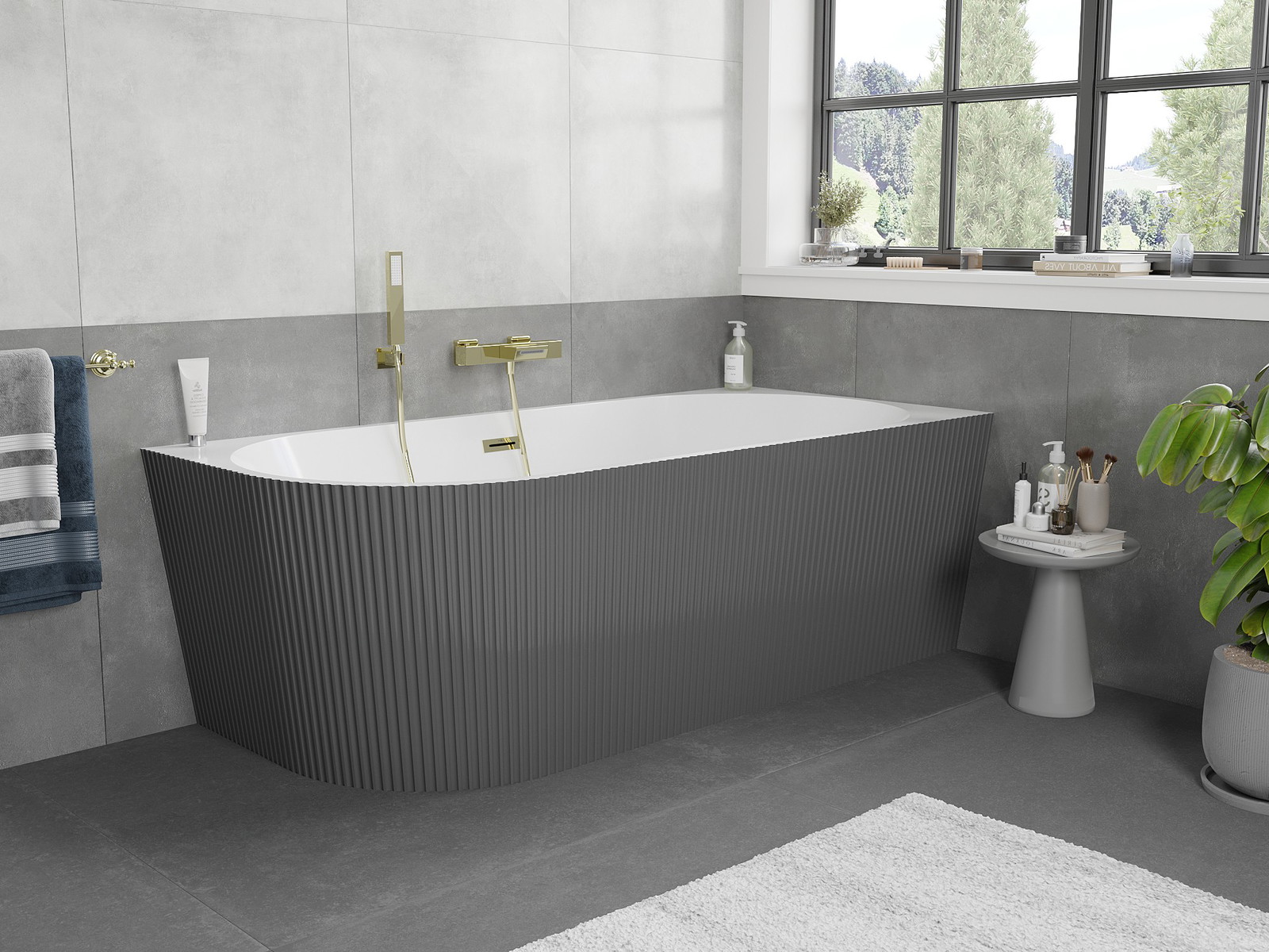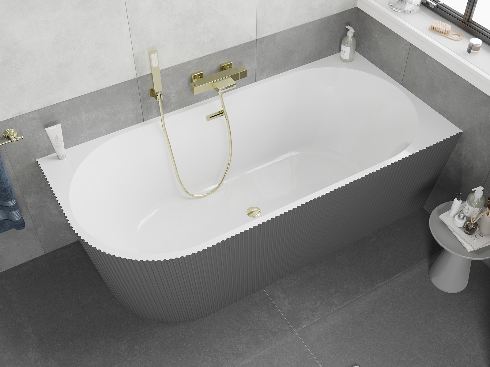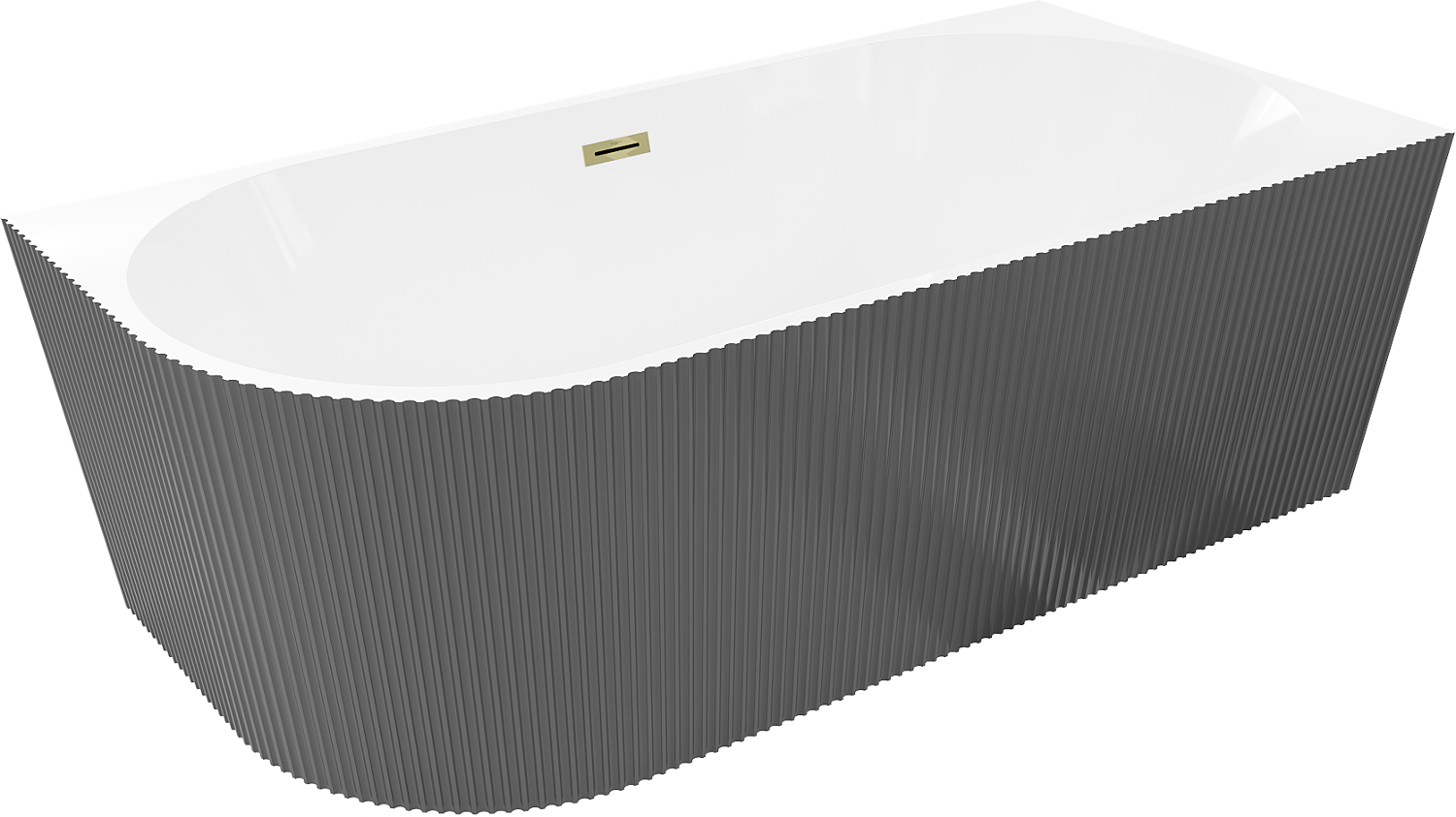 Mexen Silo szabadon álló sarok fürdőkád jobb bordázott 150 x 75 cm, fehér/szürke, arany túlfolyó - 52891507562P-50
