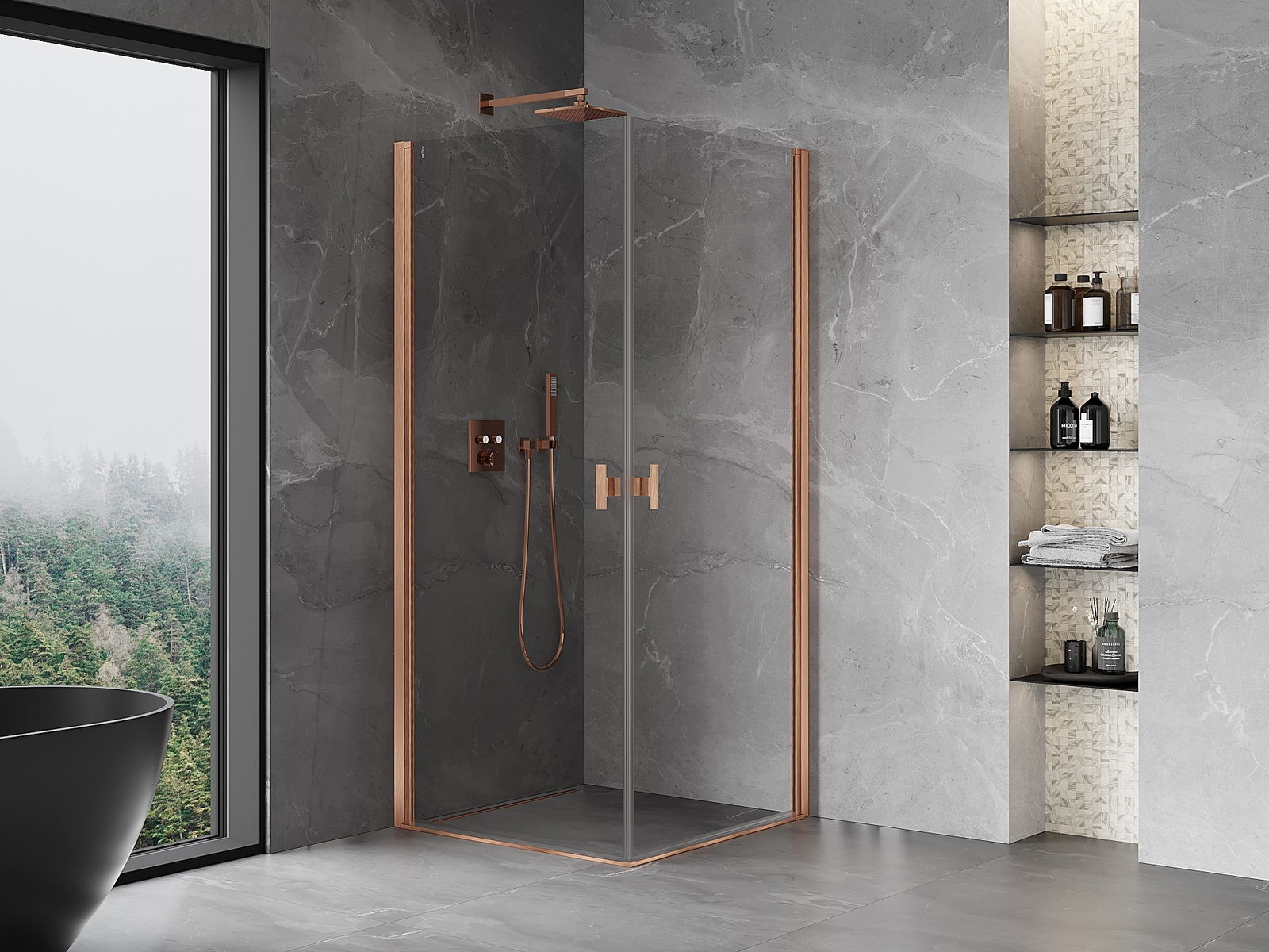 Mexen Mist-B Duo nyíló zuhanykabin 100 x 100 cm, átlátszó, csiszolt réz - 8A2-100-100-65-00