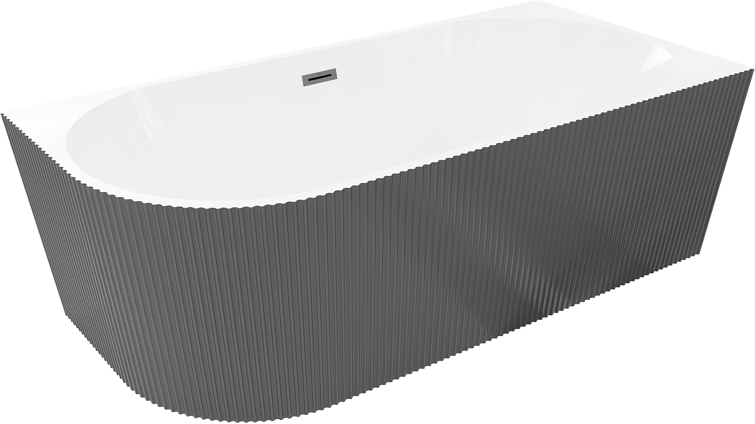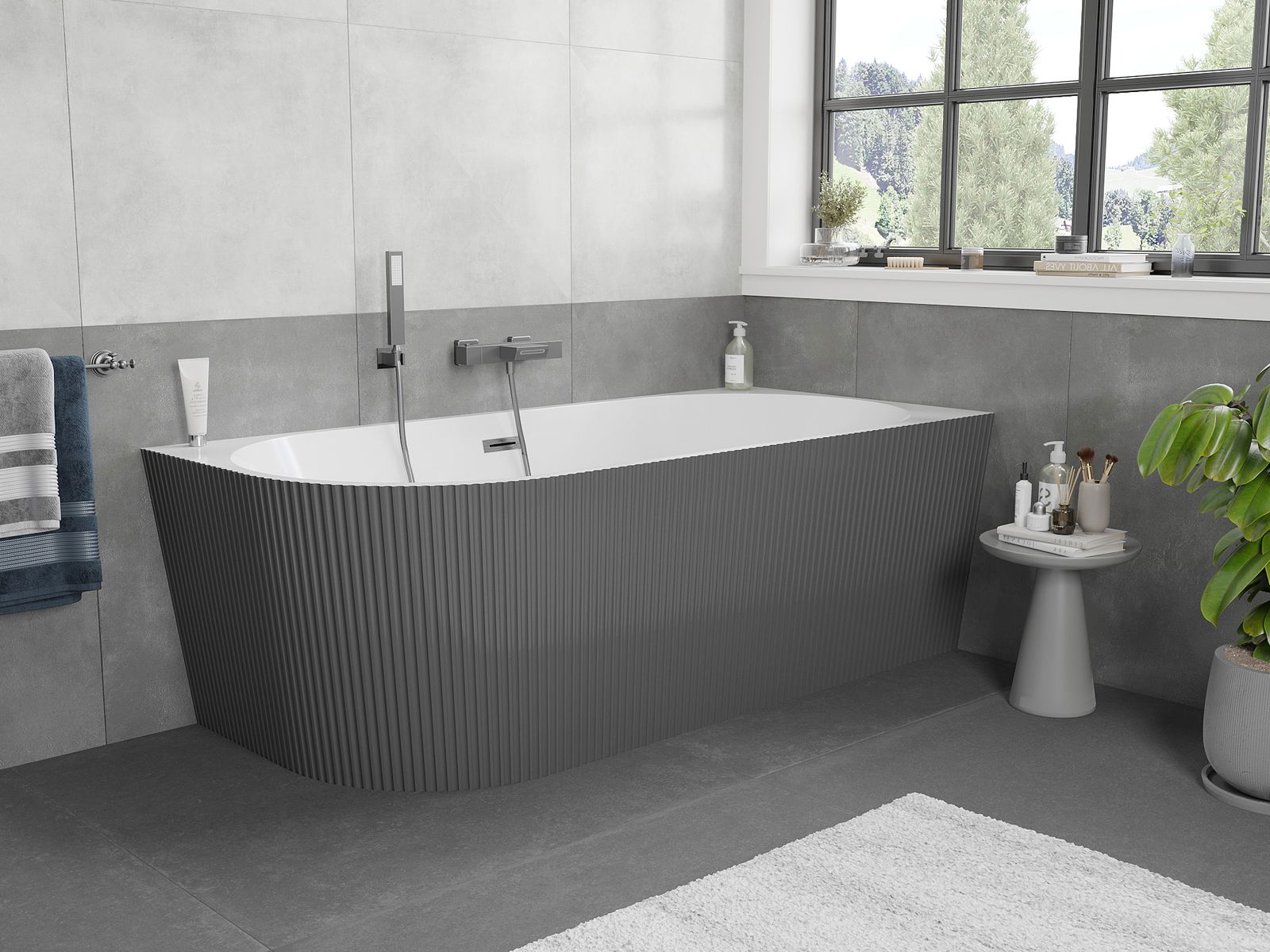 Mexen Silo szabadon álló sarok bal bordázott kád 150 x 75 cm, fehér/szürke, gun gray szálcsiszolt túlfolyóval