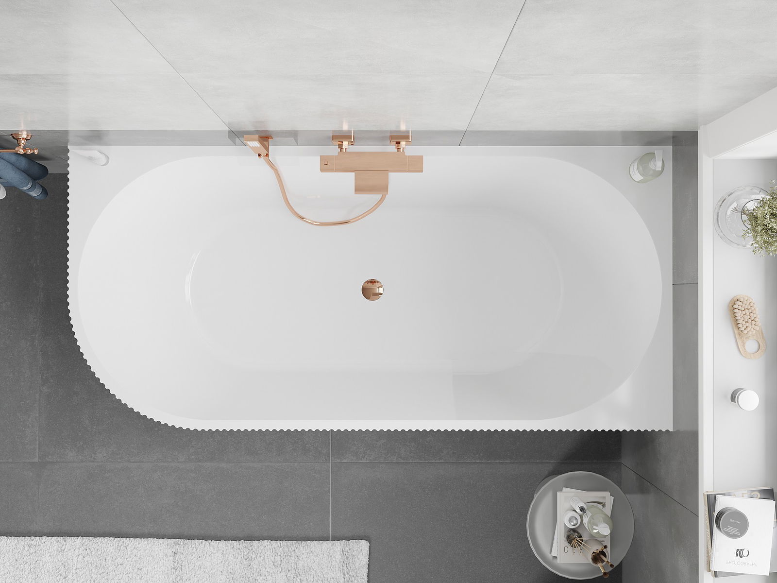 Mexen Silo sarokszabadon álló jobb oldali bordázott kád 170 x 80 cm, fehér/szürke, rózsaarany túlfolyó