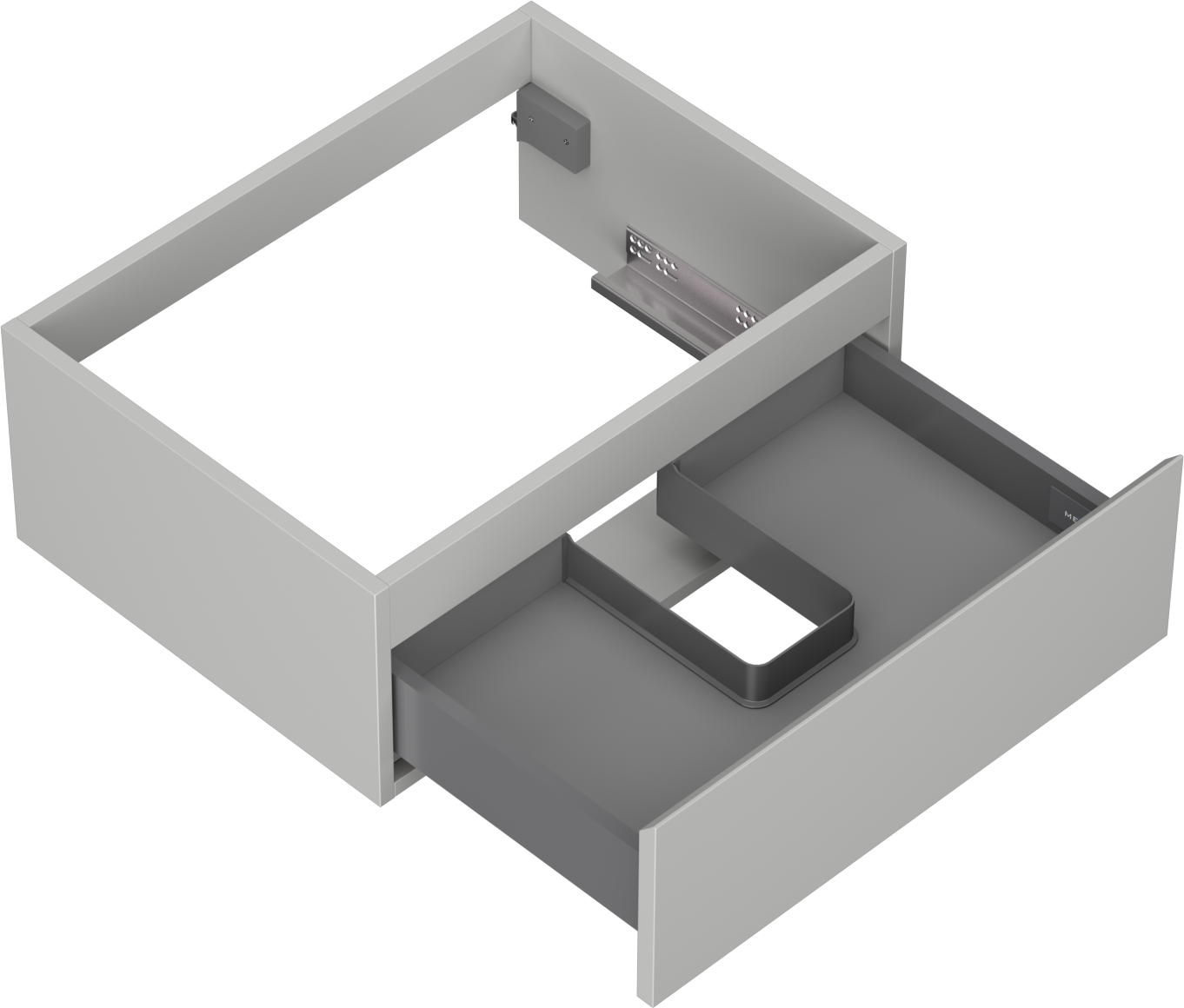 A fiókban lévő kivágás úgy van kialakítva, hogy befogadja a mosdó telepítéseknél szükséges szifont. Ennek köszönhetően a bútor teljesen funkcionálisan felszerelhető anélkül, hogy a fiók terének egy részét fel kellene áldozni a telepítés miatt.