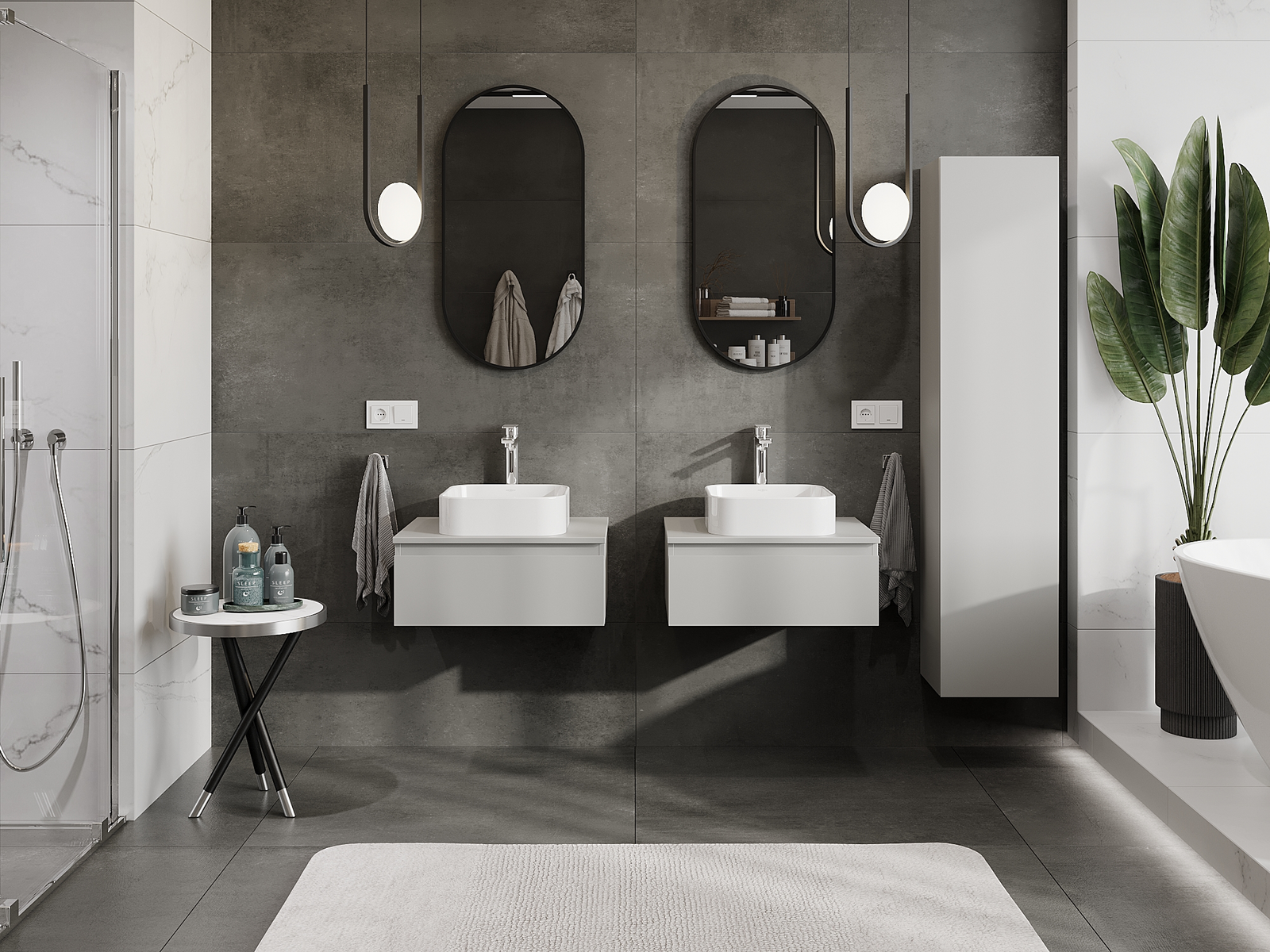 A moduláris fürdőszobabútorainkat különböző színkonfigurációkban lehet kombinálni, lehetővé téve a teljes személyre szabást. Kiválasztható mind az egyes elemek megjelenése, mind pedig funkciói, ami lehetővé teszi a bútorok személyes stílus- és használati preferenciákhoz való igazítását.