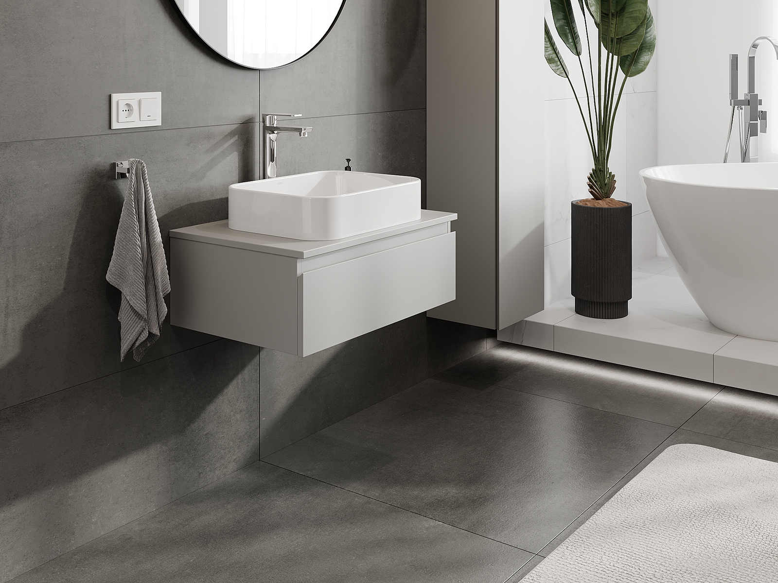 A moduláris fürdőszobabútorainkat különböző színkonfigurációkban lehet kombinálni, lehetővé téve a teljes személyre szabást. Kiválasztható mind az egyes elemek megjelenése, mind pedig funkciói, ami lehetővé teszi a bútorok személyes stílus- és használati preferenciákhoz való igazítását.