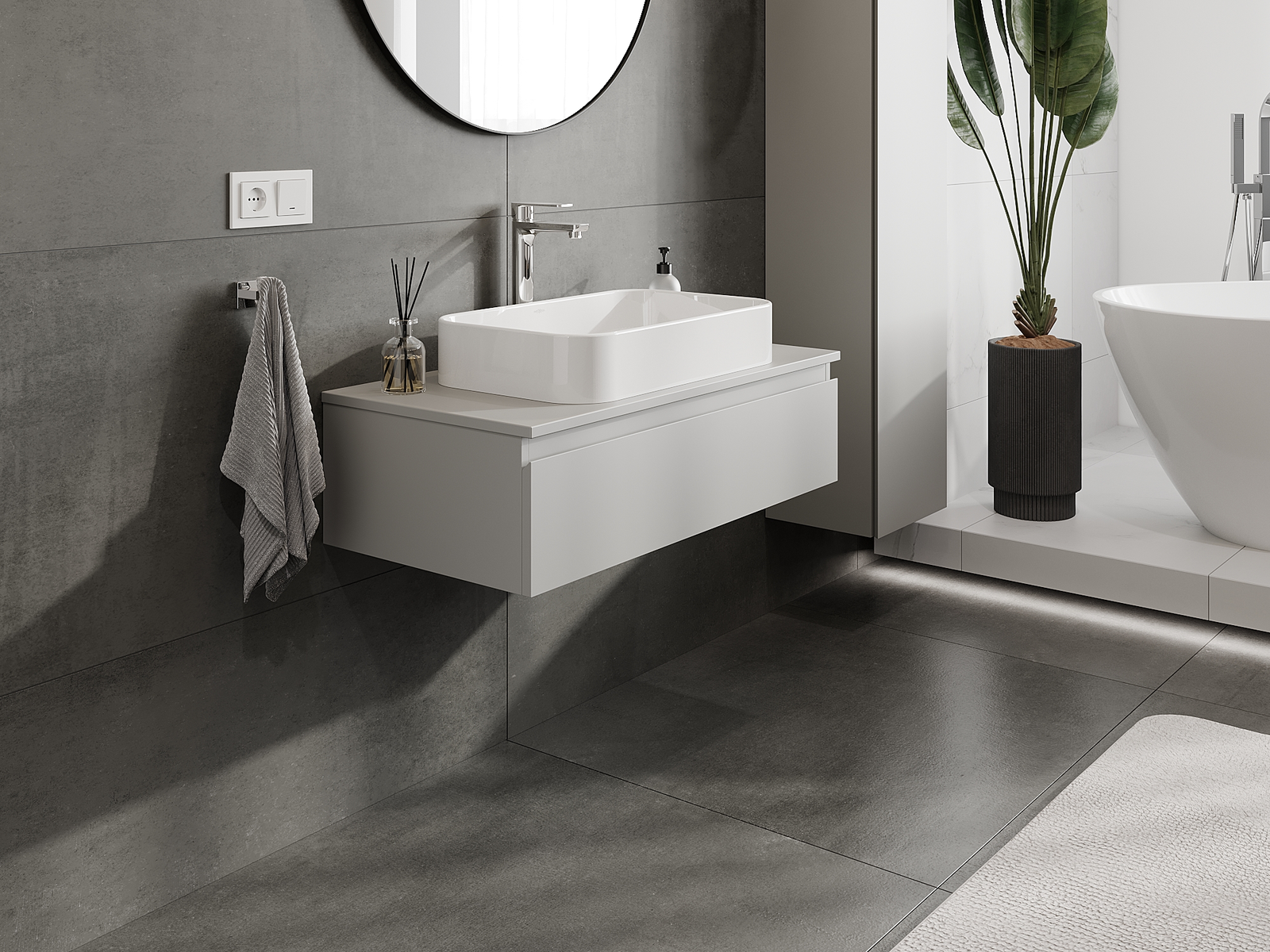 A moduláris fürdőszobabútorainkat különböző színkonfigurációkban lehet kombinálni, lehetővé téve a teljes személyre szabást. Kiválasztható mind az egyes elemek megjelenése, mind pedig funkciói, ami lehetővé teszi a bútorok személyes stílus- és használati preferenciákhoz való igazítását.
