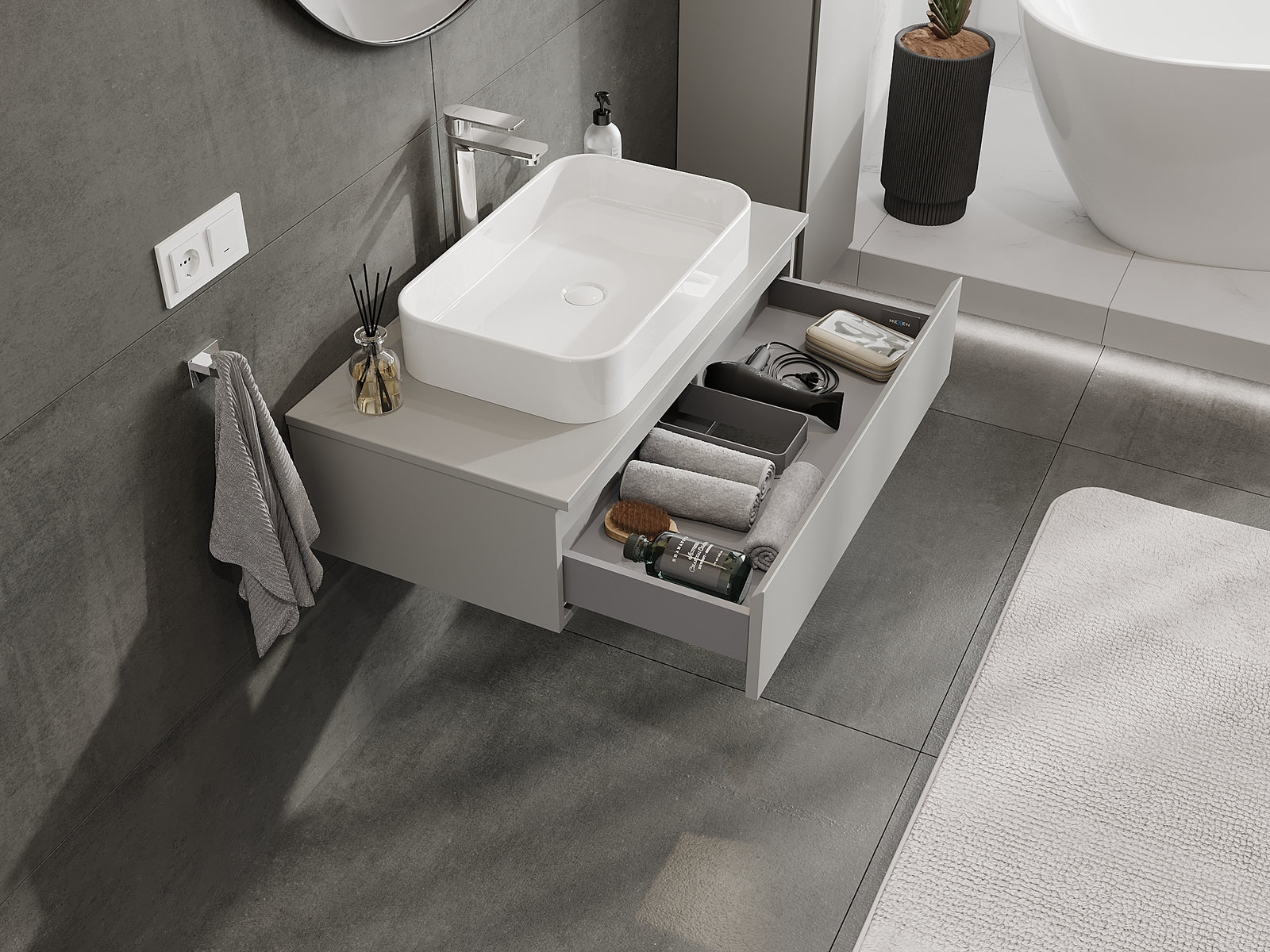 A szilárd anyagoknak, a precíz kivitelnek és a korszerű technológiai megoldásoknak köszönhetően a termék kényelmes használatot, nedvesség- és hőmérséklet-változásokkal szembeni ellenállást, valamint elegáns megjelenést biztosít, amely illeszkedik a különböző fürdőszobai stílusokhoz.
