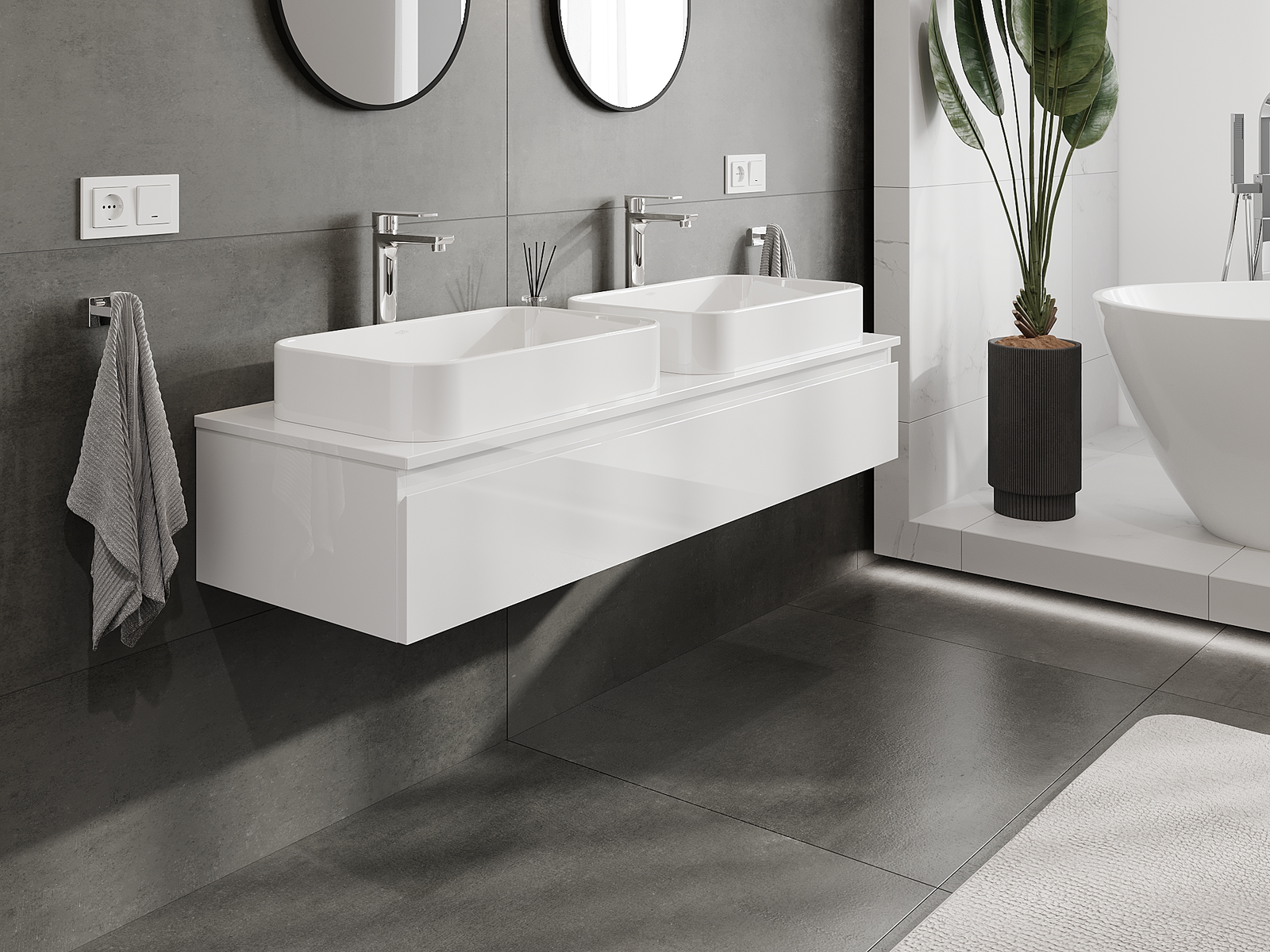 A magas minőségű lakkal bevont lemez kiváló választás a fürdőszobába, elegáns megjelenést biztosít, valamint nagy ellenállást a nedvesség és karcolások hatásának. A magas minőségű lakk védi a munkalap felületét, biztosítva annak hosszú távú tartósságát, esztétikumát és könnyű karbantartását.